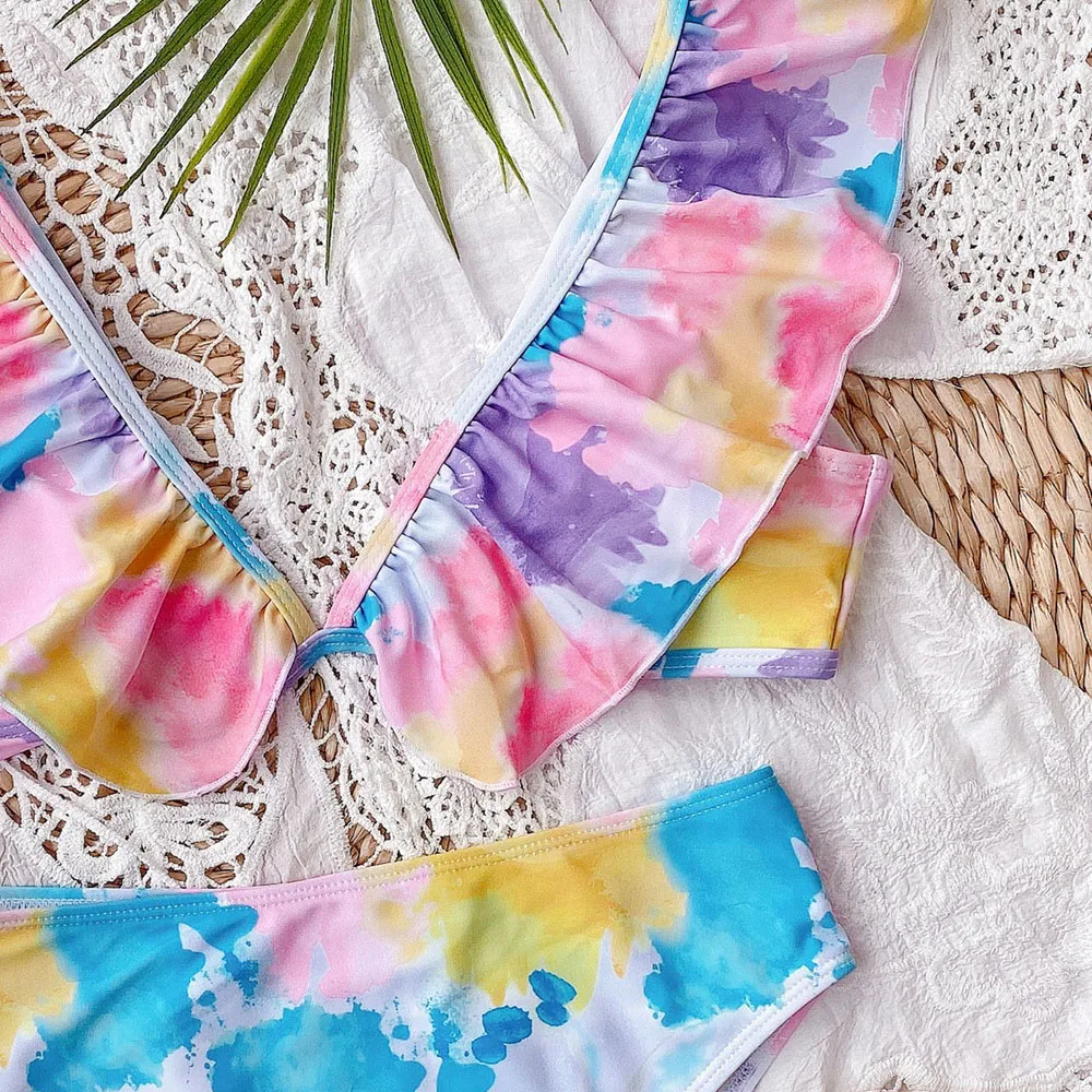 Комплект бикини женский, с принтом тай-дай, с рюшами, пуш-ап, купал...
