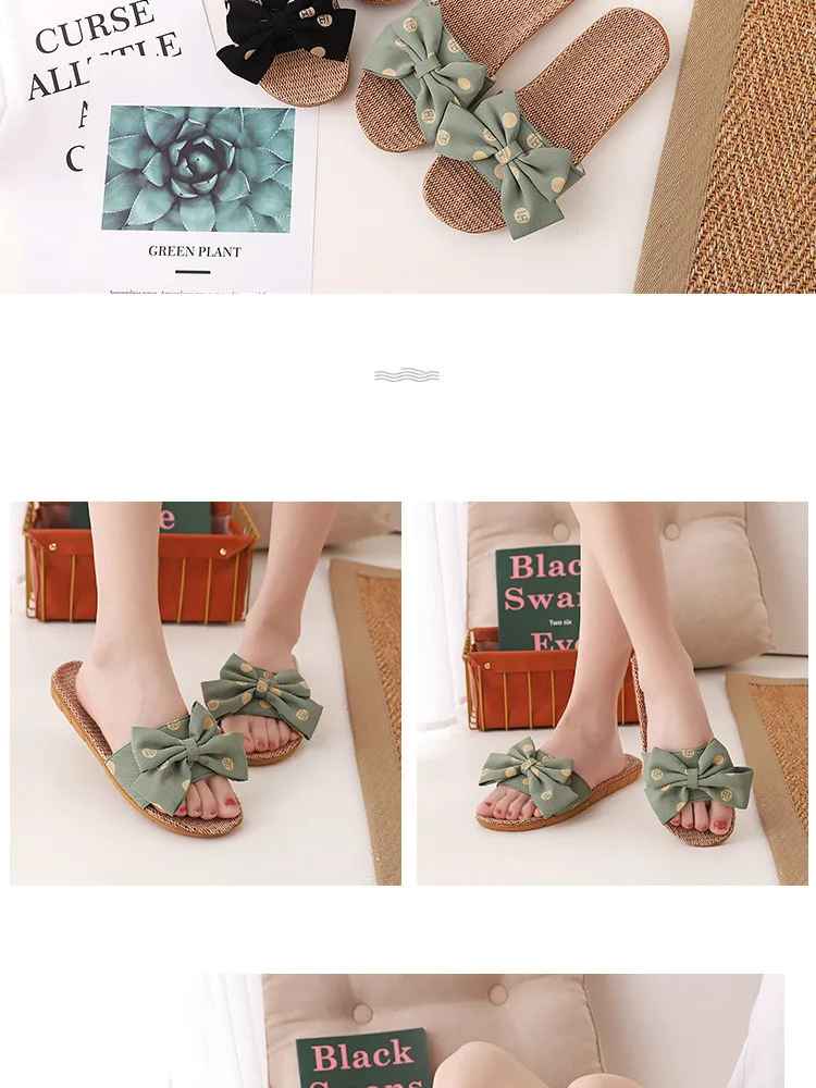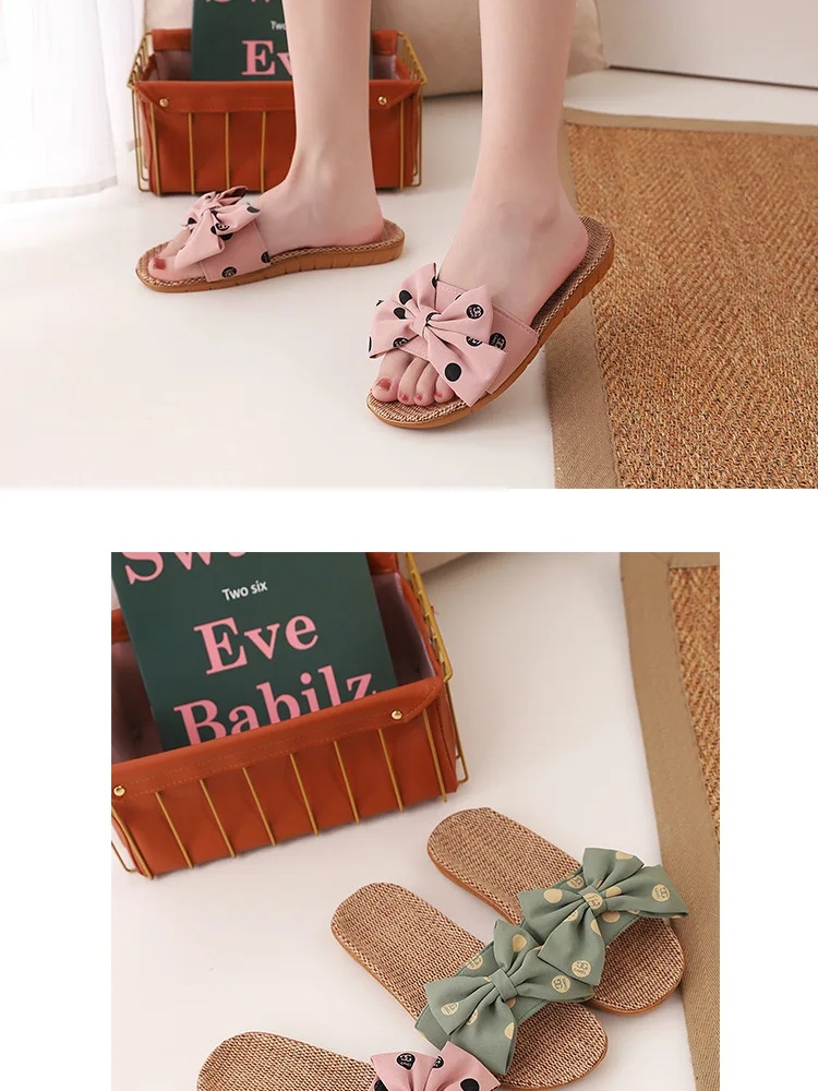 Suihyungлетние женские шлепанцы; Повседневные шлепанцы в горошек с бантом для девочек; Льняная домашняя обувь; Женские домашние Вьетнамки; Сандалии