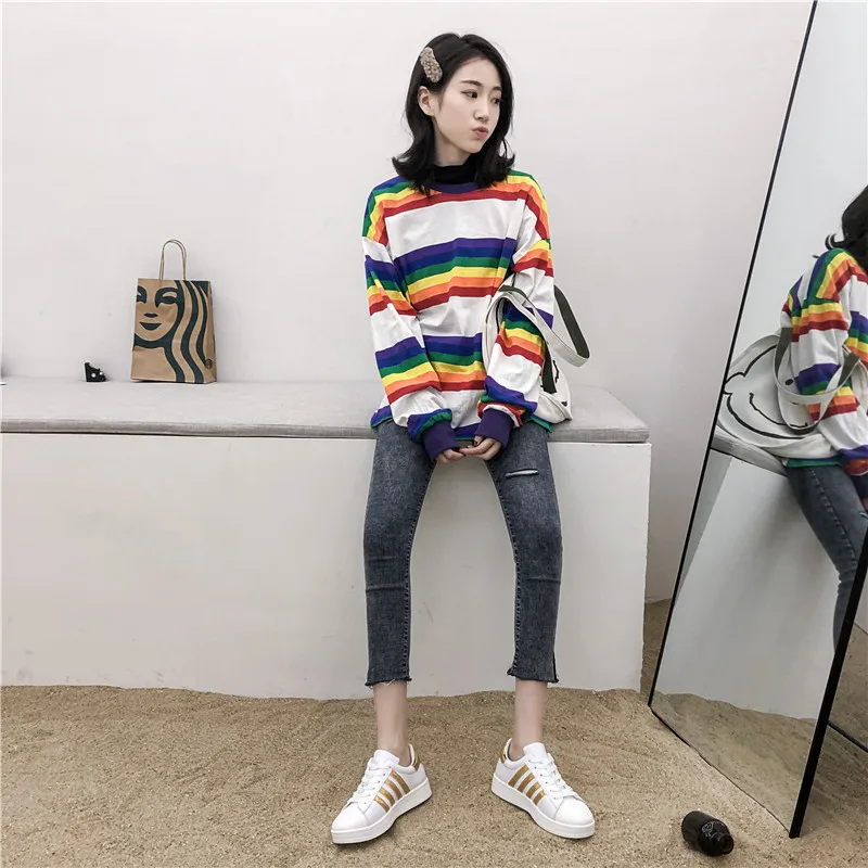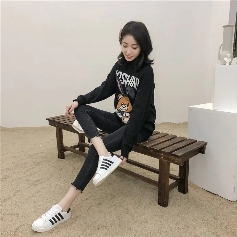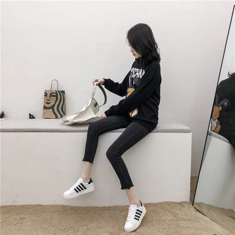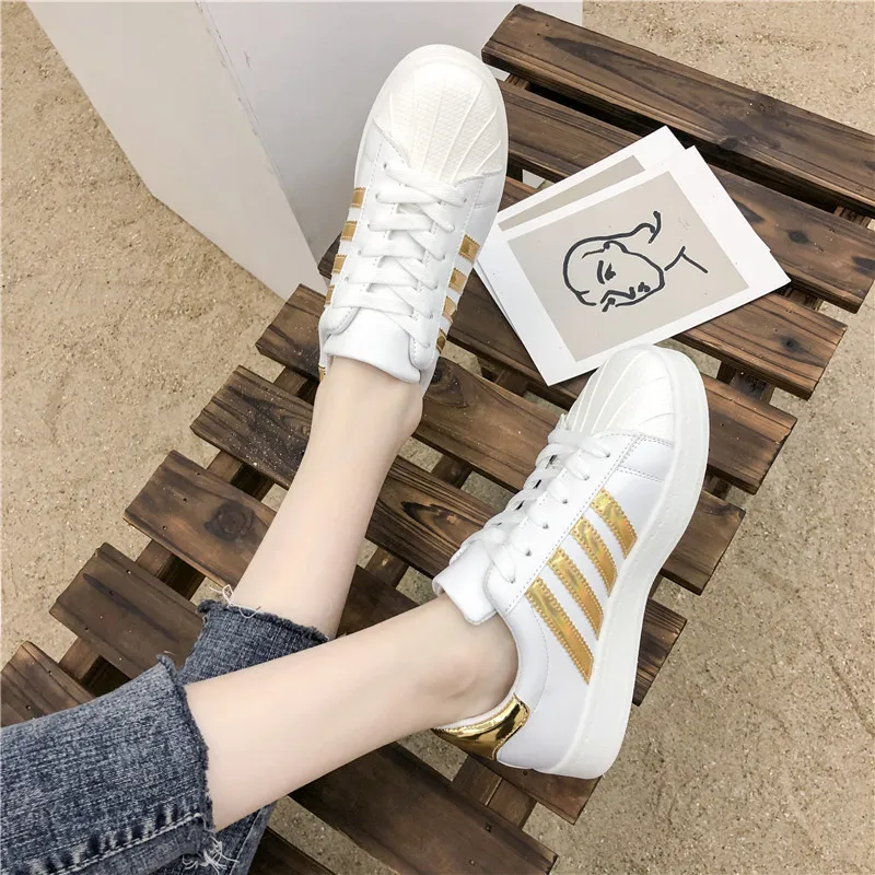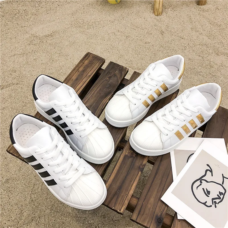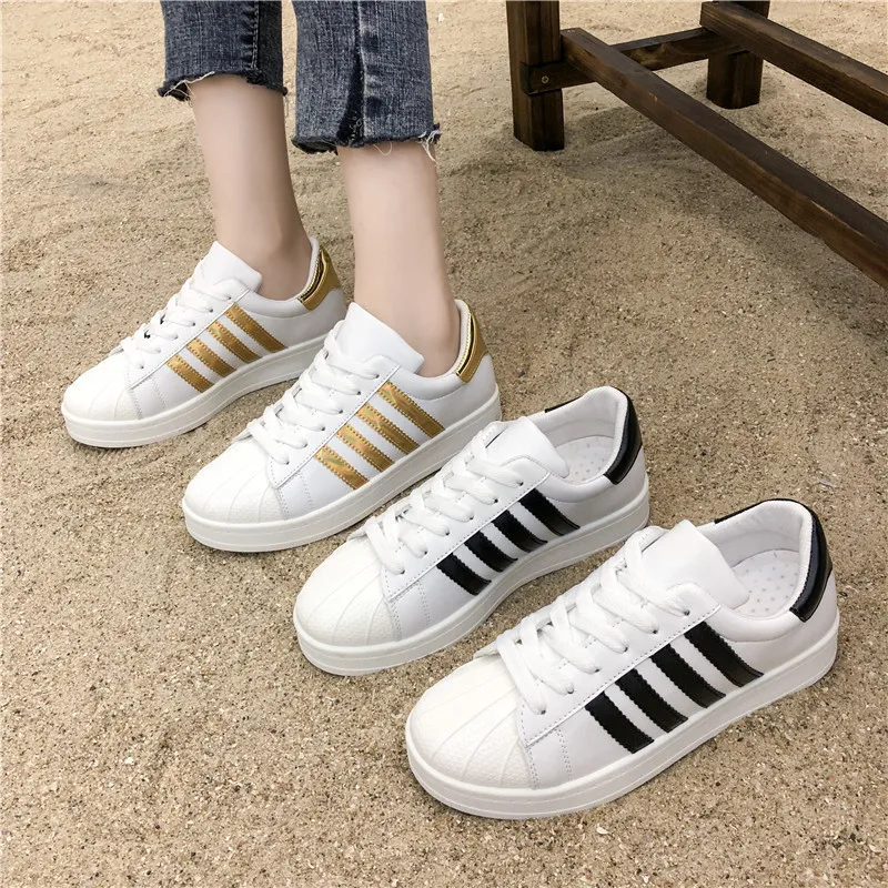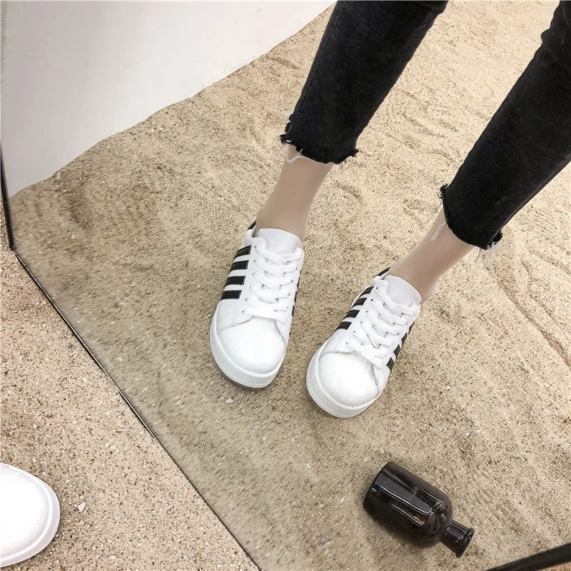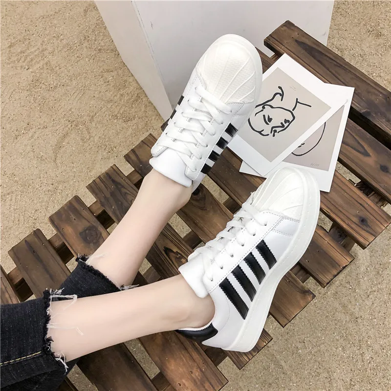 Женская обувь в полоску, новые стильные модные кожаные кроссовки, женская Стильная универсальная белая спортивная обувь в корейском и британском стиле