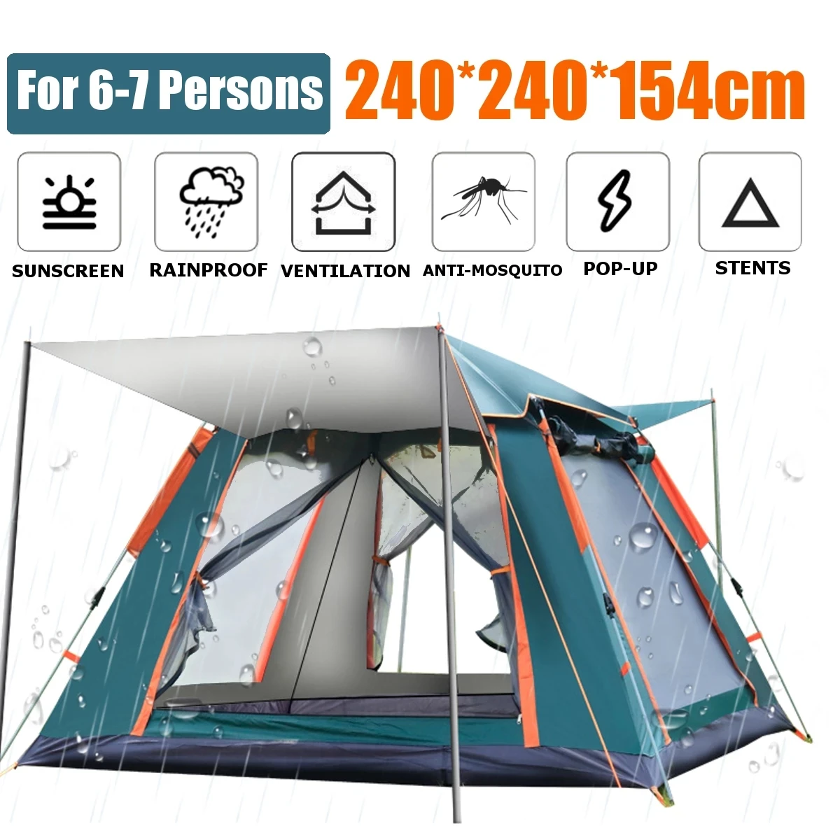 Большая семейная палатка на 6-7 человек, быстрая установка, складная двухслойная палатка для кемпинга, тенты от солнца