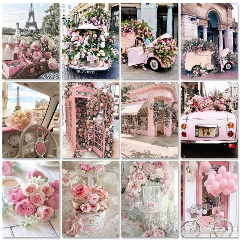 PhotoCustom 40x50cm Краски по номерам розовый декорации DIY набор акриловых Краски ing для Краски ing по номерам на холсте, украшенные цветами; Домашние туфли Dec