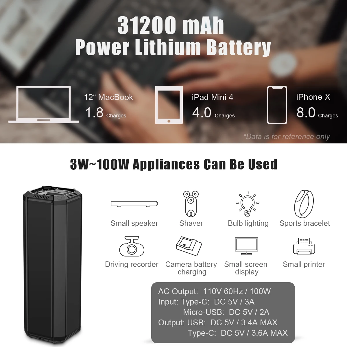 31200 мАч выход переменного тока 110 В или 220 В 100 Вт электростанция для ноутбука планшета Mac Ipad Mini Ipad Iphone Apple TV watch Airpod