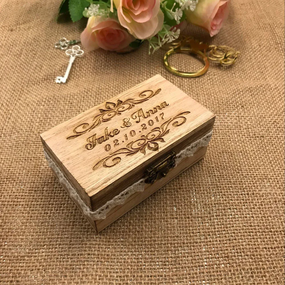 Индивидуальная деревенская старинная деревянная коробка для носителя колец, изготовленная на заказ коробка для свадебных колец с именем жениха и невесты, Подарочная коробка для свадебных колец