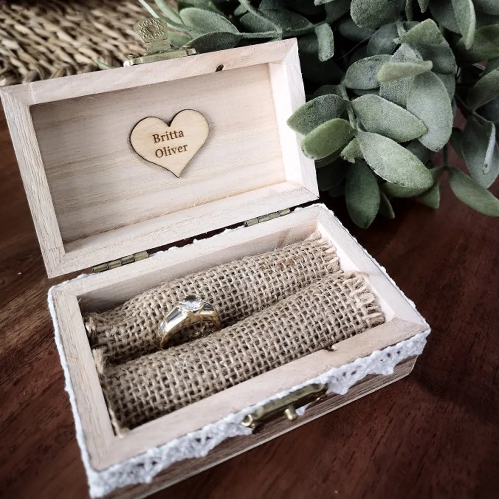 Персонализированная деревянная коробка для обручального кольца в деревенском стиле, Индивидуальная коробка для обручального кольца с именем невесты и жениха, коробка для обручального кольца с цифрами