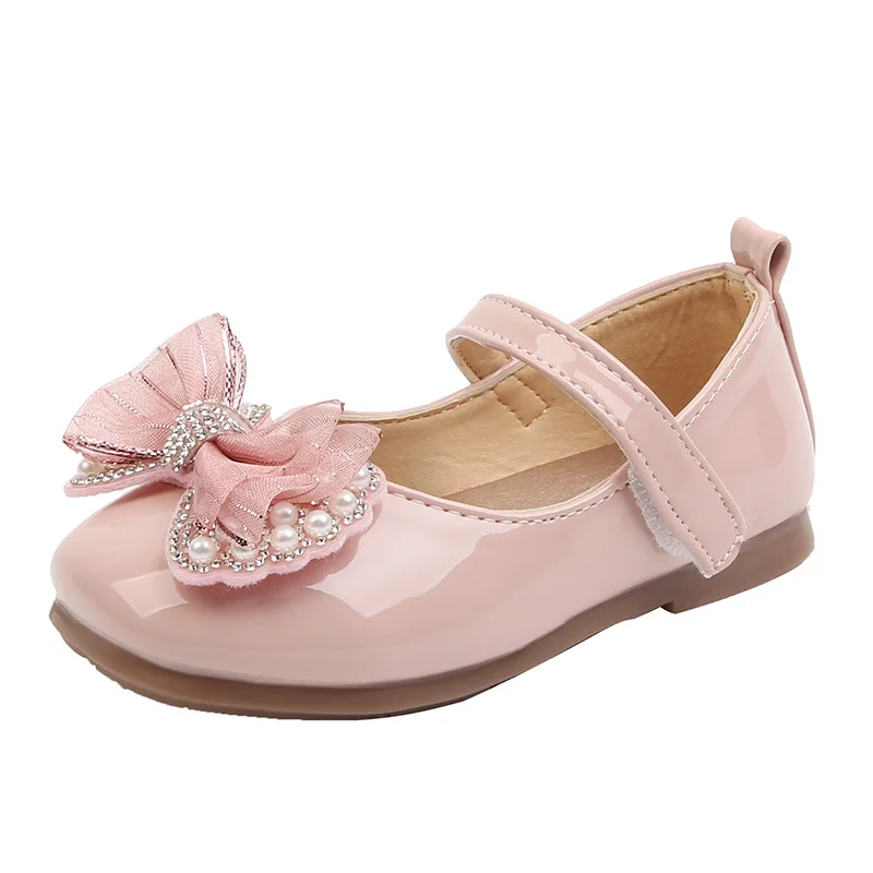 Кожаные туфли для девочек, мягкая лакированная кожа, плоская подошва, кружевной бант, жемчуг вечерние для дня рождения, свадьбы