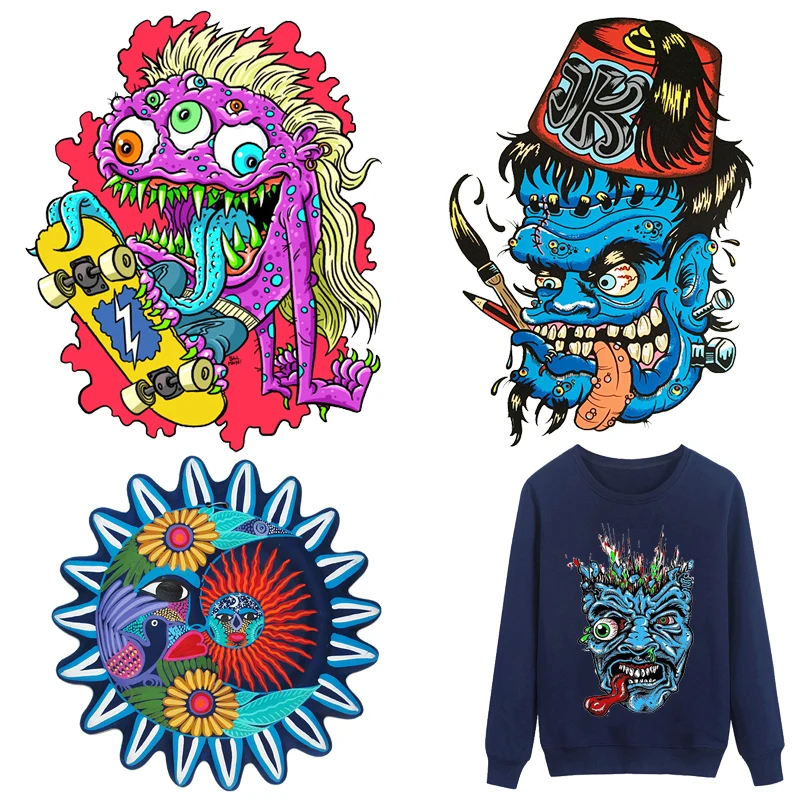 Термонаклейки на одежду для скейтборда, с изображением монстра, термоклейкие наклейки патч аппликация сделай сам для девочек