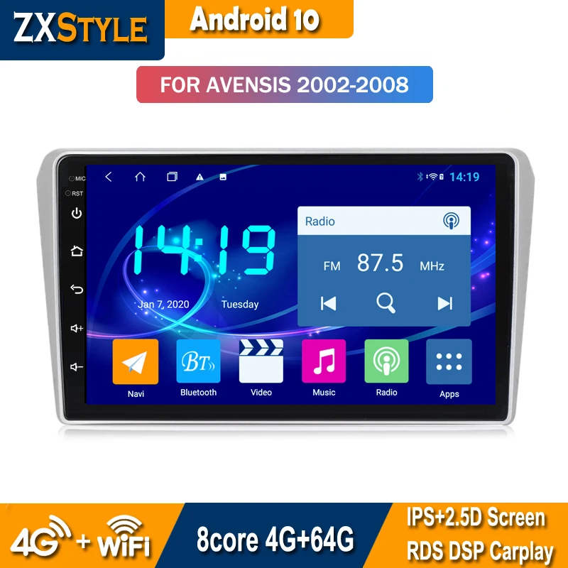 Автомобильный GPS-навигатор 4 Гб + 64 ГБ, Android 10, для Toyota Avensis T250 2 II 2002-2008, радио, аудио, мультимедийный плеер