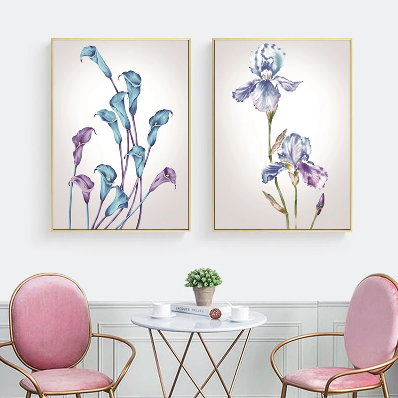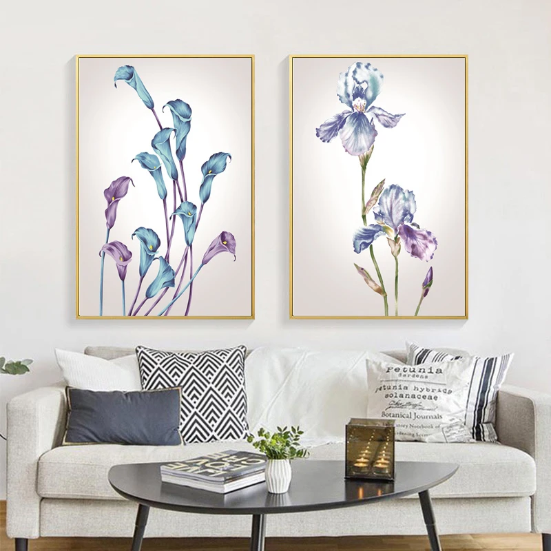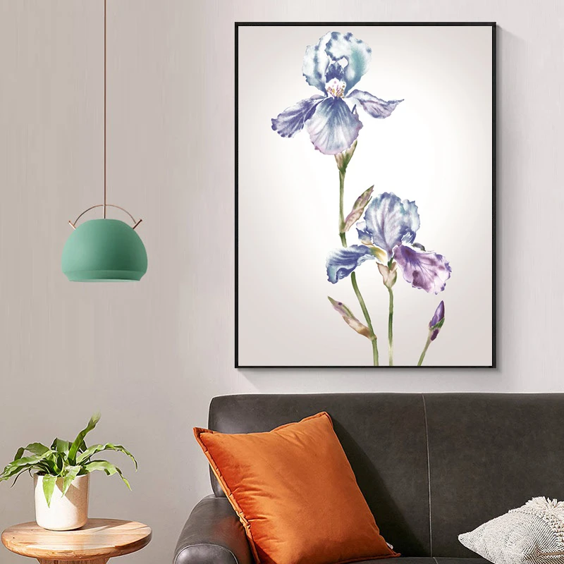 Плакат акварельный с голубыми цветами, настенная Картина на холсте ...