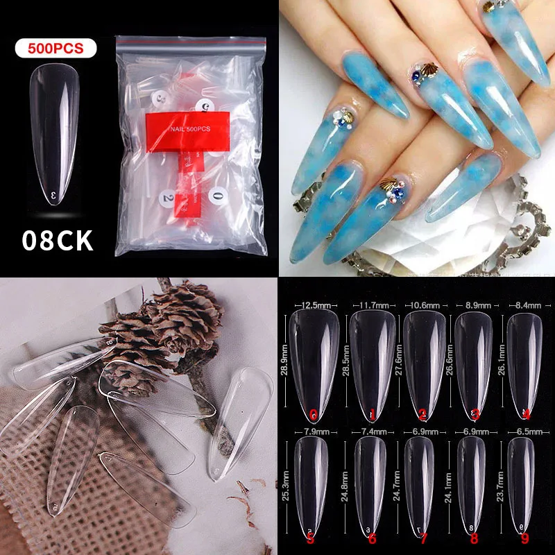 designs:Clear Natural White Nail Tips UV Gel False Point Stiletto French Acryl