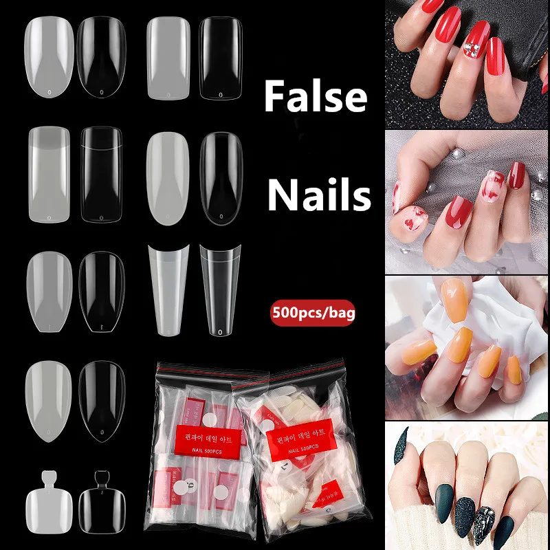500 шт. накладные ногти, искусственные прозрачные белые V-образные прямые круглые полныеполуакриловые гробы для французского маникюра