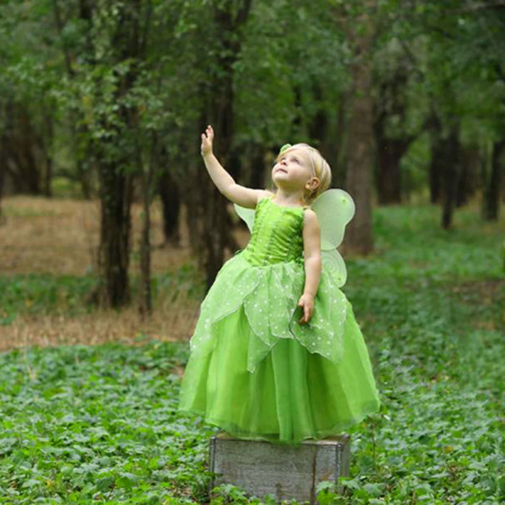 Карнавальный костюм принцессы для девочек-подростков, летнее зеленое Пышное Платье на бретельках с крыльями феи, платье Тиана