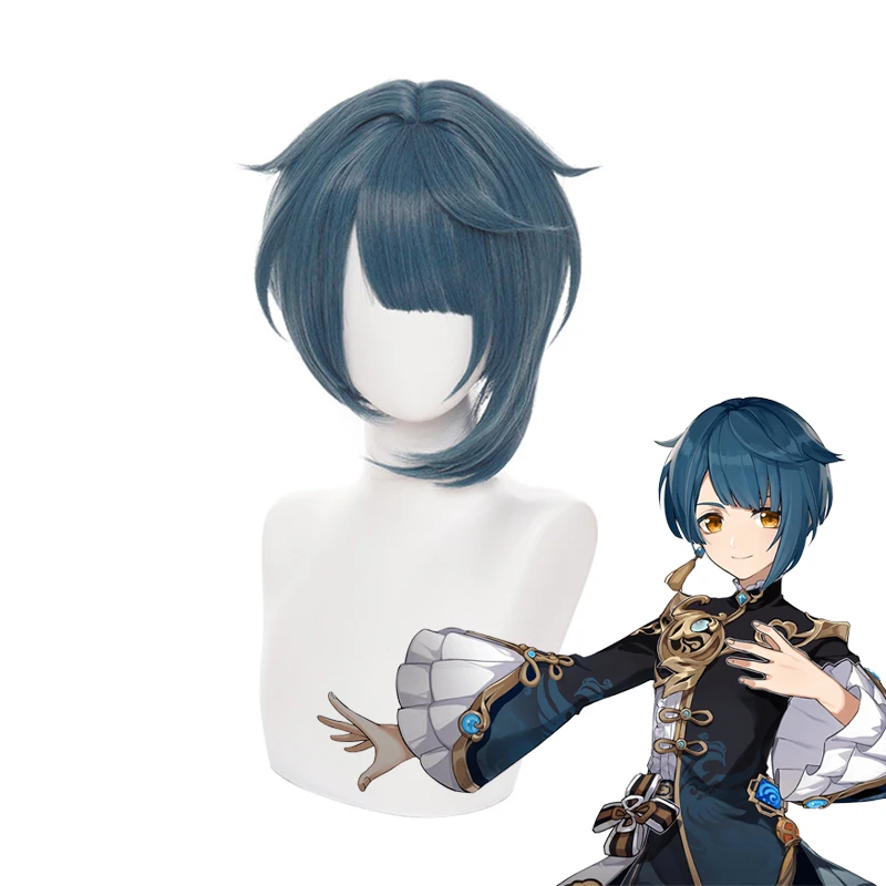 Темно-синий короткий парик Game Genshin Impact XINGQIU, карнавальный костюм, термостойкие синтетические волосы Xing Qiu, мужские и женские вечерние парики