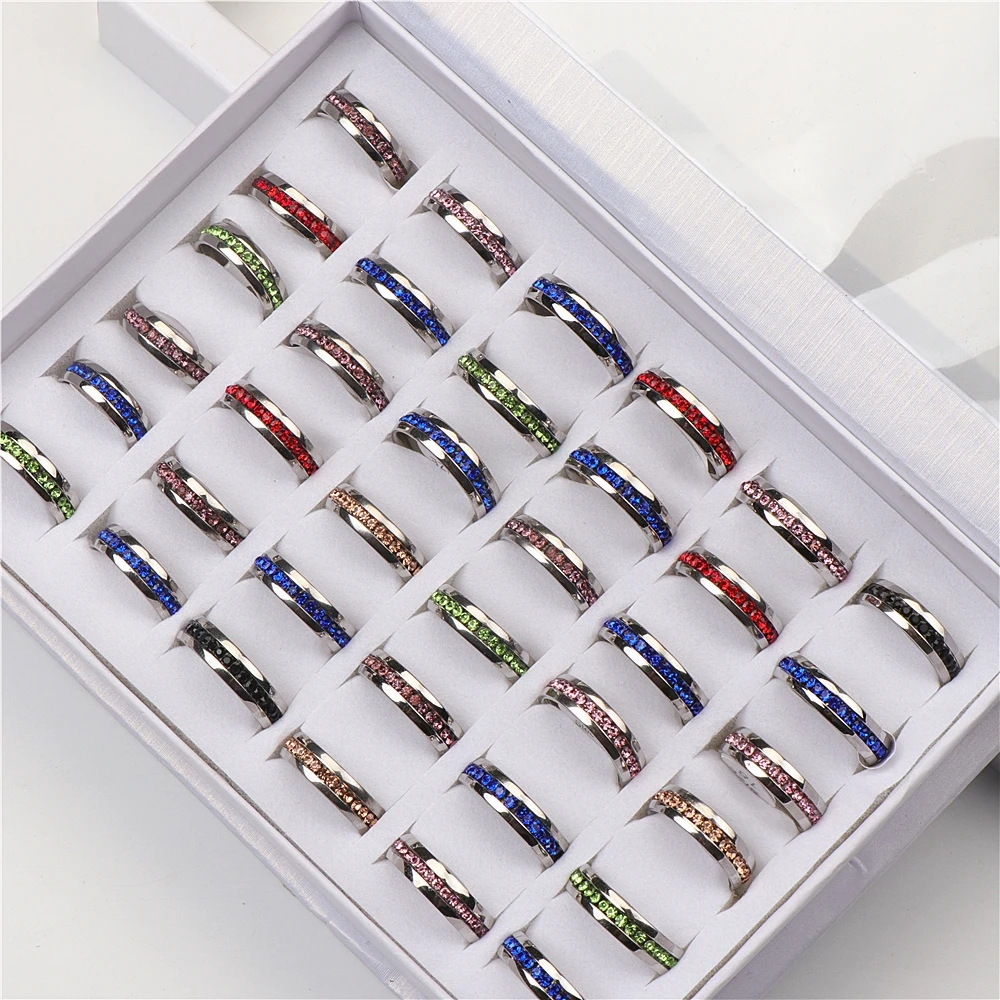 10 шт.лот, модные разноцветные однорядные кольца из нержавеющей стали со стразами серебряного цвета для женщин, мужчин, подарки для вечерние, ювелирные изделия