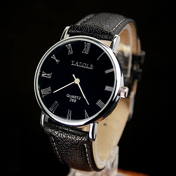 Мужские Кварцевые аналоговые наручные часы Blu-Ray с римскими цифрами, черный циферблат, ремешок из искусственной кожи
