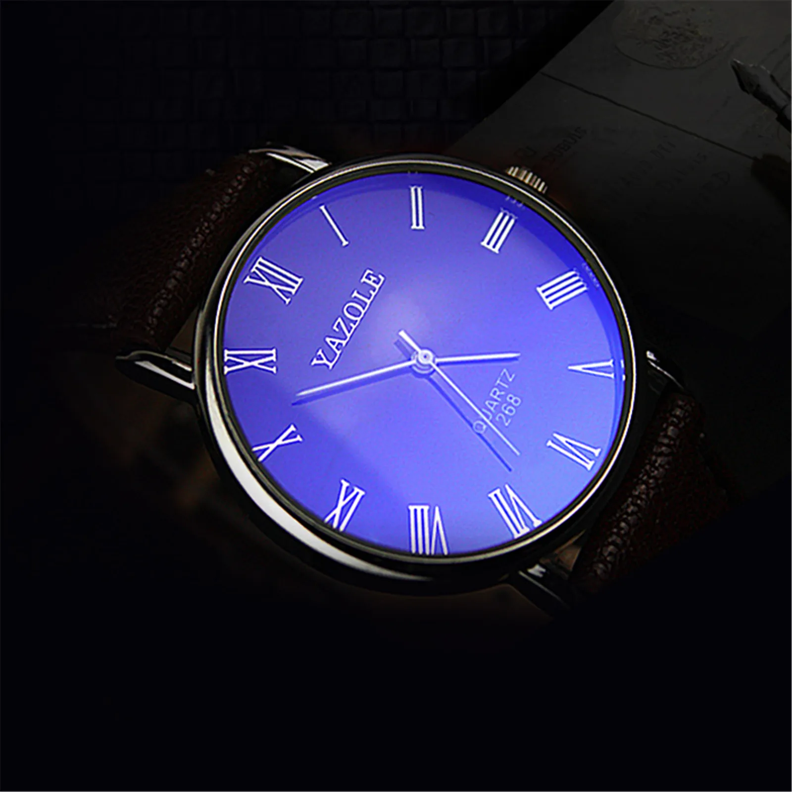 Мужские часы Blu-Ray кварцевые наручные часы с римскими цифрами аналоговые наручные часы с кожаным ремешком хронограф водонепроницаемые спортивные часы мужские часы #3