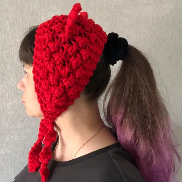 Шапка-бини вязаная женская, зимняя, 2021, ручной работы, шляпа лягушки