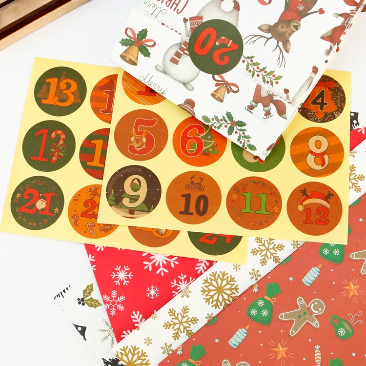 24 набора, Рождественский календарь, бумажные подарочные пакеты, снеговик, искусственное печенье, попкорн, украшение для рождевечерние