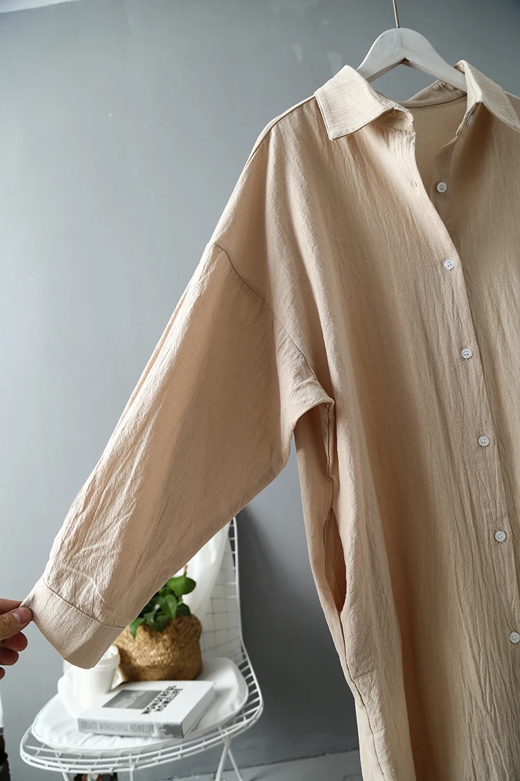 Платье-рубашка женское длинное из хлопка и льна, винтажная блузка-р...
