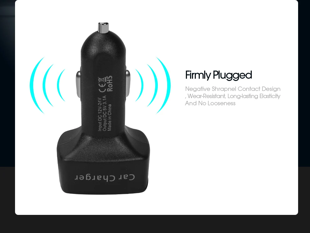 Фиксированная поддержка помогает стабилизировать автомобильное зарядное устройство USB.