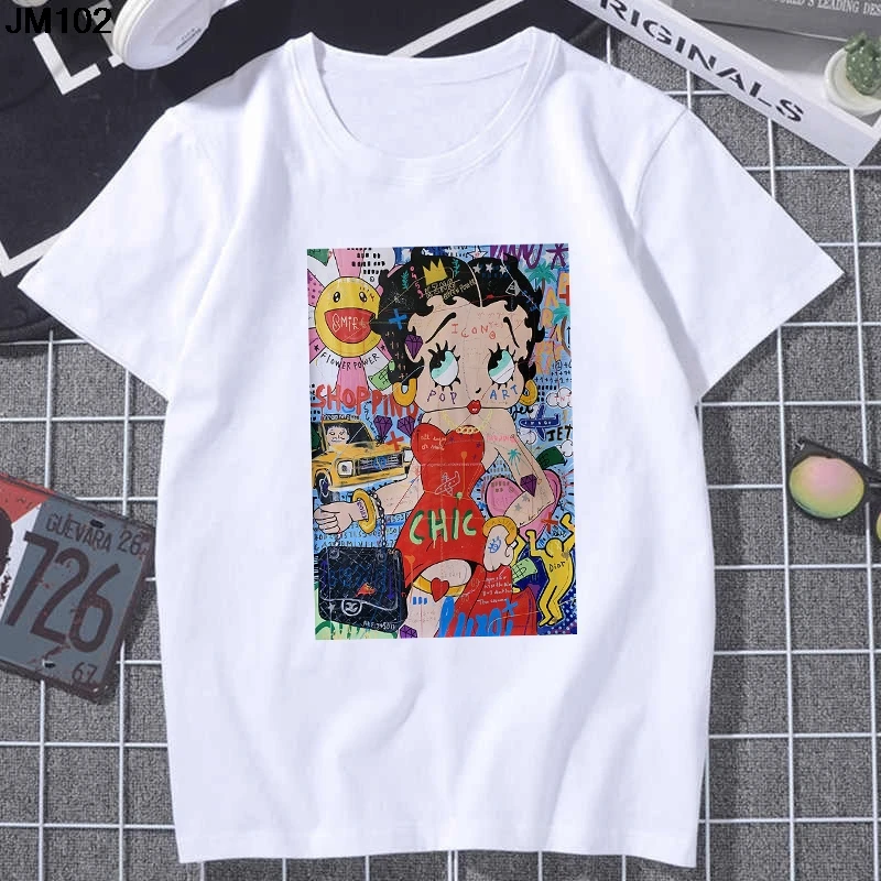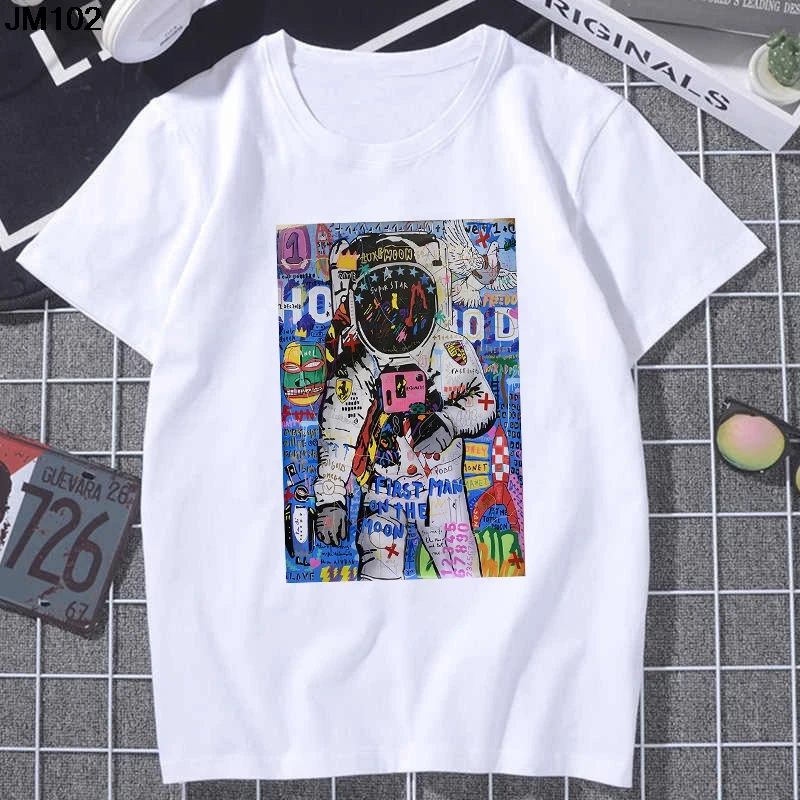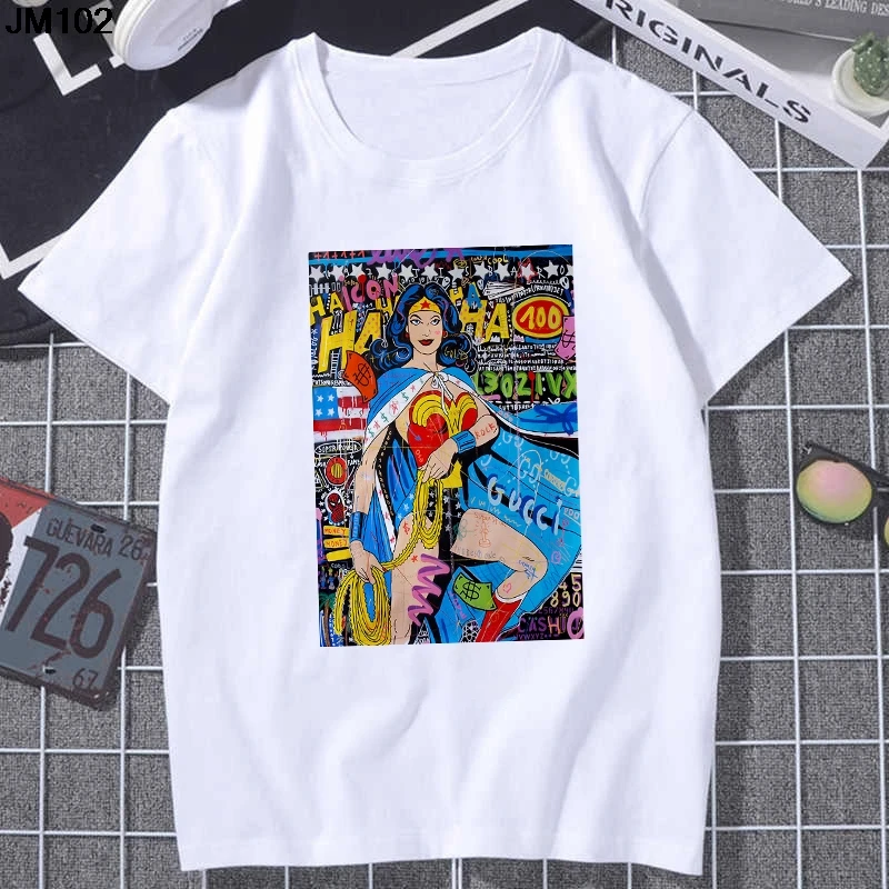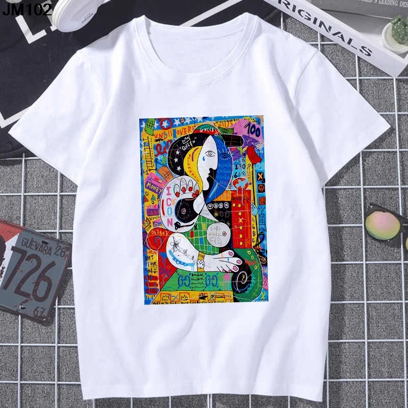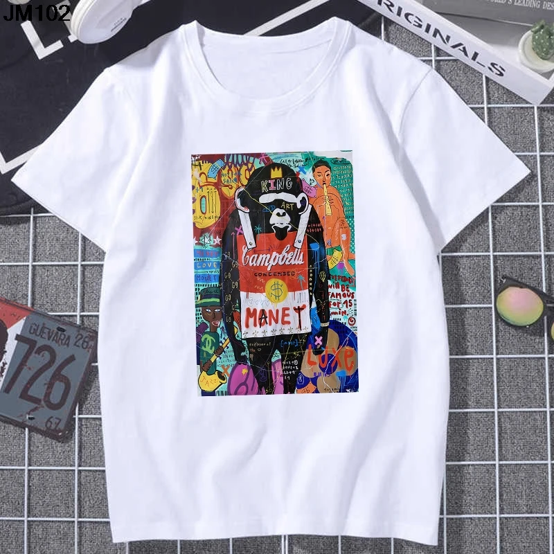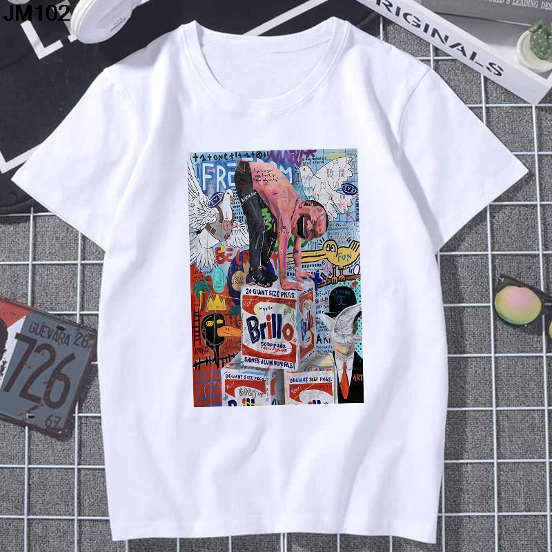 Женская футболка в стиле Харадзюку, белая футболка с забавным художественным принтом Моны Лизы и граффити, модная уличная одежда на лето