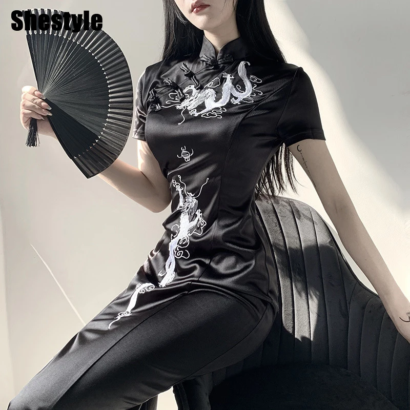 Женское платье-Ципао с вышивкой в виде дракона Shestyle