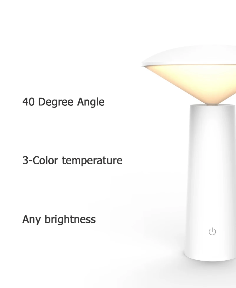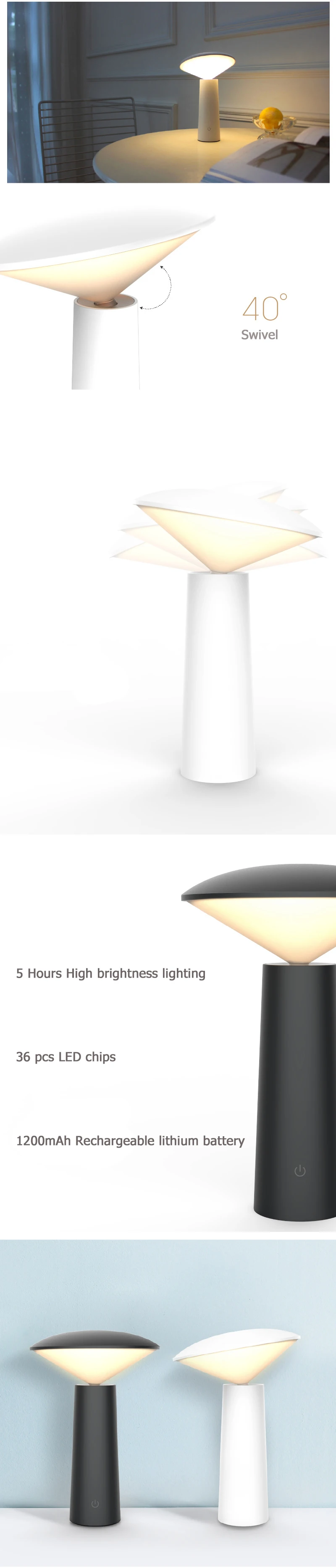 Тип: светодиодный беспроводной Настольный светильникЦвет: белый/черныйКоличество: 1 шт.Материал: ПоликарбонатНоминальная мощность: 4 ВтЕмкость аккумулятора: 1200 мАчВремя зарядки: около 4 часовПродолжительность освещения: 5-10 часов (полностью заряжен)Размер: 14*14*15 смВес нетто: 0,6 кг