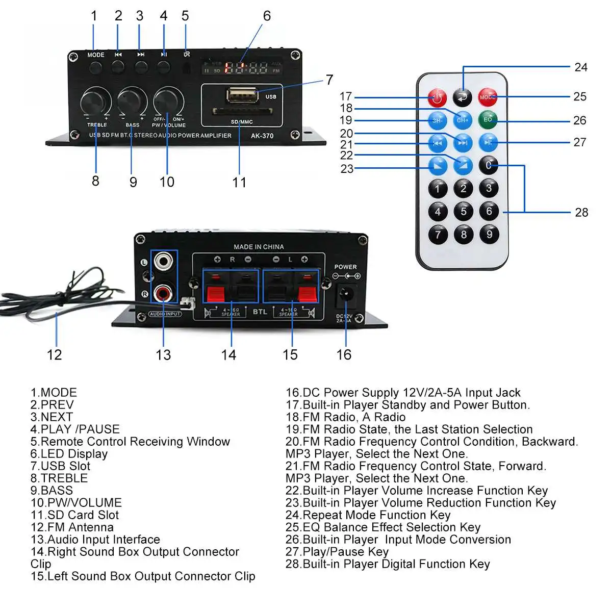 Примечание:Если вы хотите использовать его в качестве домашнего усилителя, вам нужно купить адаптер питания 220 В-12 В.