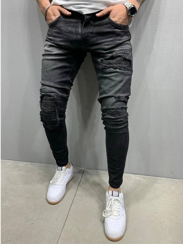 Новинка 2021, мужские джинсы, модные драпированные Стрейчевые Поцар...