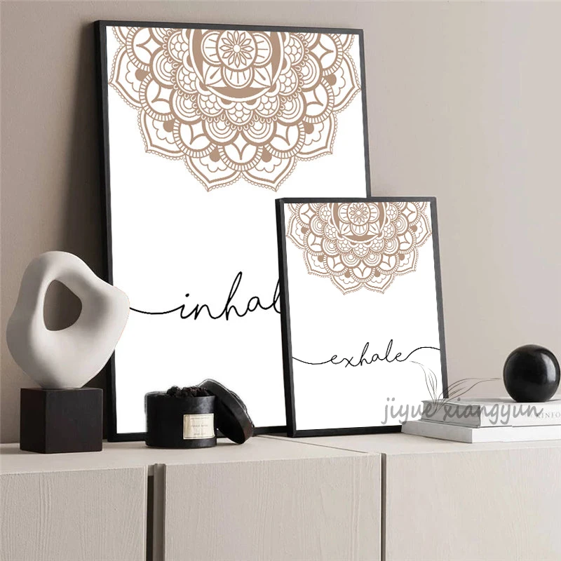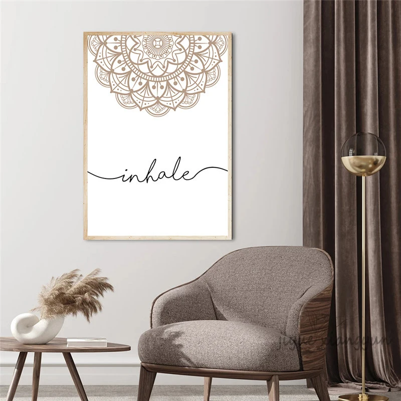 Плакат на холсте с изображением йоги на выдохе, Минималистичная Настенная картина в богемном стиле с мандалой, домашний декор для йоги