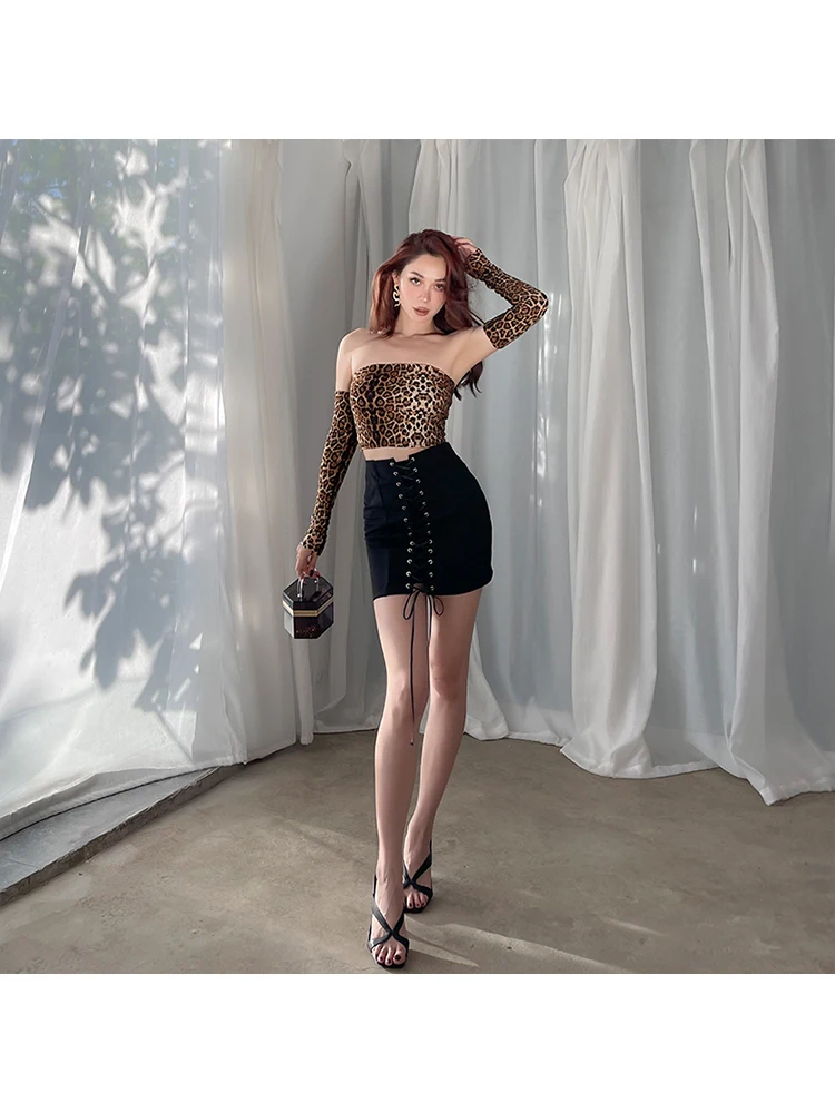 2021 Летние Новые Модные Винтажные топы с леопардовым принтом, женские сексуальные топы без бретелек с открытой спиной, топ-бюстье, облегающая тонкая футболка, уличная одежда