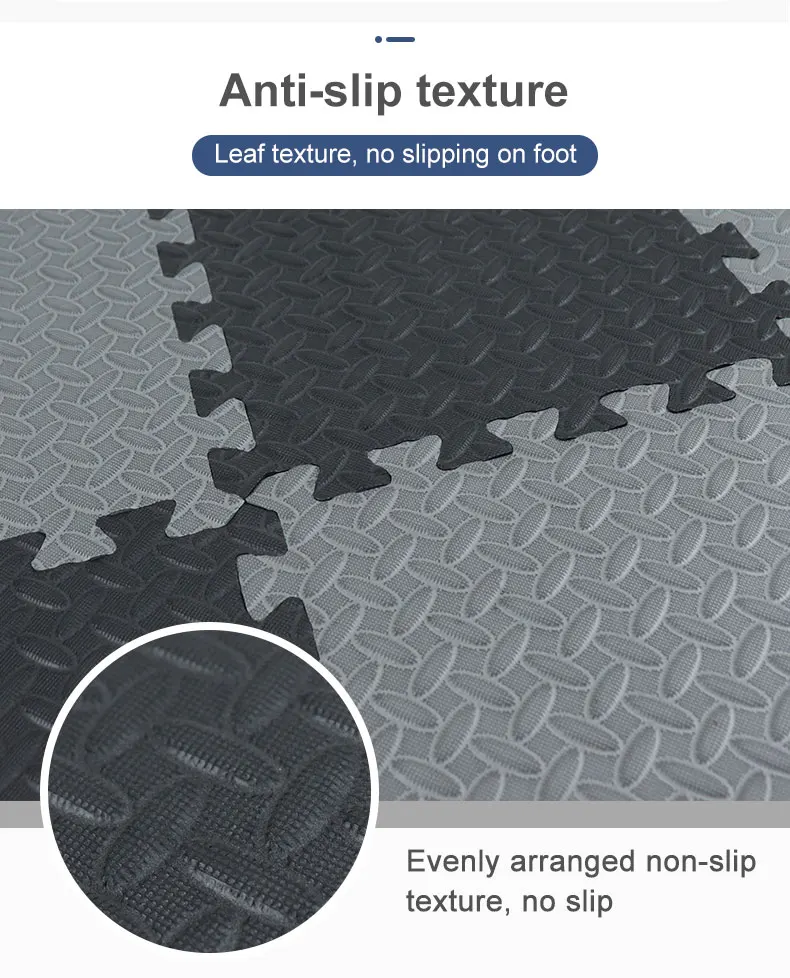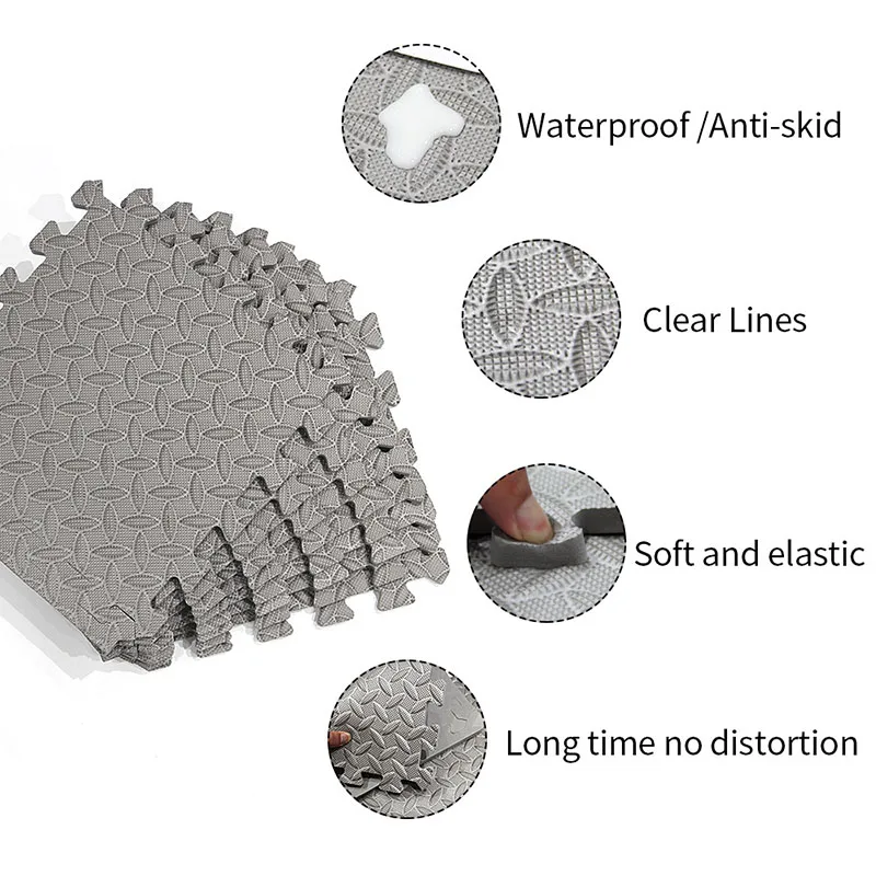 * Охрана окружающей среды без запаха:HВысококачественная новая защита окружающей среды EVA материал, охрана окружающей среды, здоровье, безопасность, нетоксичный и без запаха, Безопасный в использовании.* Защита от скольжения и падения:Коврик имеет четкую и регулярную текстуру, плотную плотность, не легко упасть и хорошую противоскользящую производительность.* Высокая эластичность и высокая твердость:Коврик высокой плотности, высокая эластичность, высокая твердость, быстрая скорость восстановления и длительный срок службы.* Защитный пол для тренировки:Прочная, нескользящая текстурированная плитка защищает полы, создавая комфортное пространство для тренировок* Широкий спектр применений:Водостойкий и шумоподавляющий дизайн прост в чистке, отлично подходит для использования в гаражах, тренажерных залах, домашних фитнес-залах или даже детских игровых площадках. Сушить на воздухе или протирать сухой тканью* Легко Собрать: Легкие кусочки пазлов подключаются быстро и легко, и их можно разобрать так же просто для быстрого хранения