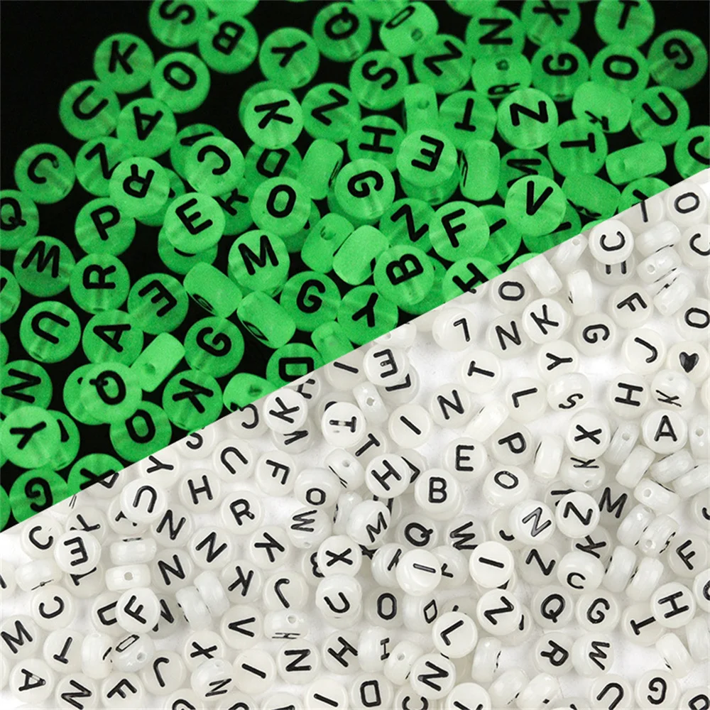 Флуоресцентные бусины в форме сердца, звезды, букв, сердца, акриловые бусины для изготовления браслетов, сделай сам, детские украшения, аксессуары, светящиеся в темноте, 100 шт.