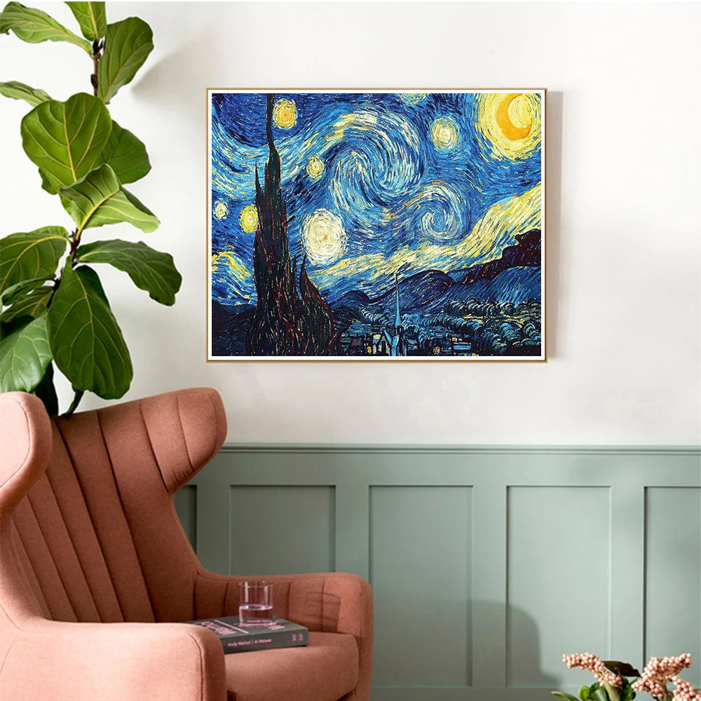 Алмазная Живопись Ван Гога, пейзаж звездной ночи, 40x50 см, 5D мозаика сделай сам, полноразмерная искусство, Настенная Наклейка в виде вышивки хобби, домашний декор