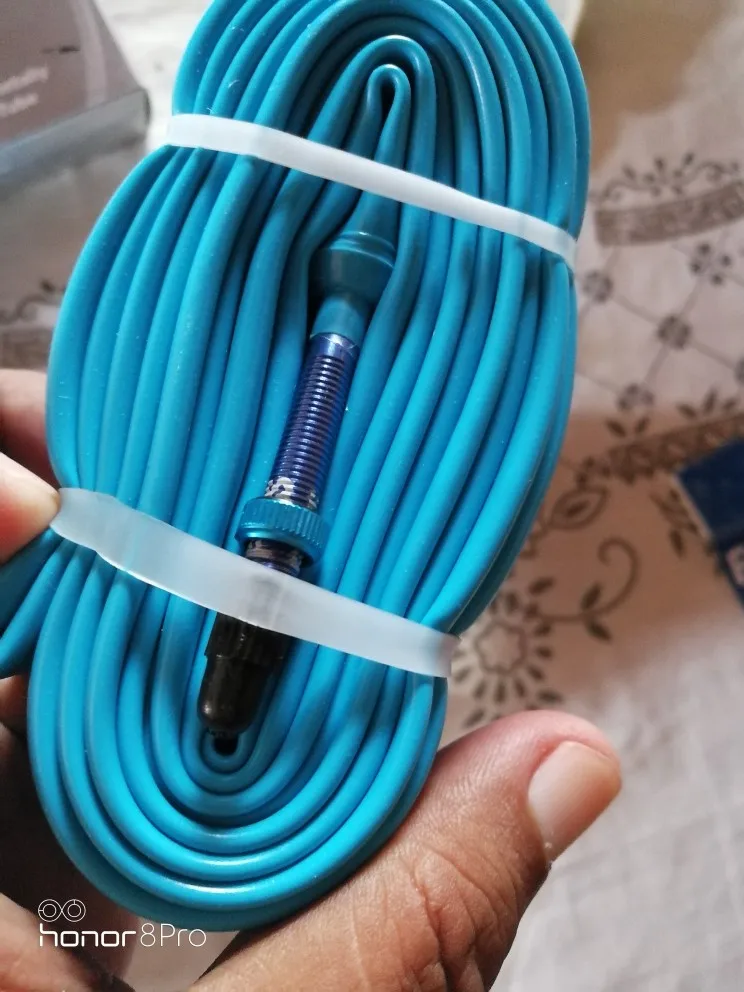 Упаковка пришла немного морщинистой, но ничего, что мешает продукту. Примите во внимание, что он был немного удивлен, при прикосновении к материалу происходит впечатление от пластика и резины. Еще не установлен, но я весил две трубки... сообщение говорит 180 г, но весил 189 г, а остальные 172 г были в среднем, но это хорошее несоответствие. Хорошо легче по сравнению с обычными воздушными камерами. Честно говоря, я немного скептически относится к этому продукту, и поскольку он намного дороже, чем у камеры common air, цена на самом деле не рекомендуется покупать сейчас, после установки и использования немного посмотрите, может ли этот отзыв быть дополнен здесь. Но соответствует описанию и поэтому Ставлю 4 звезды. Быстрая доставка, поступление в течение 17 дней.
