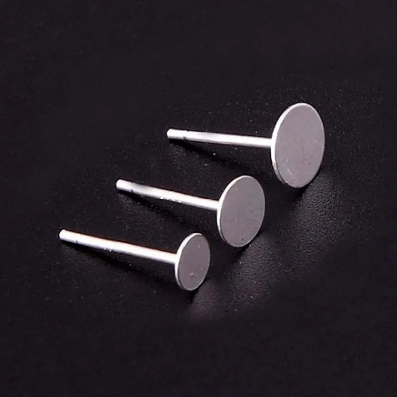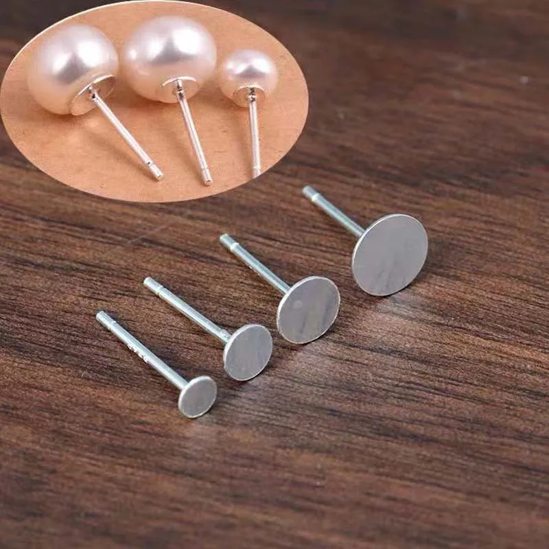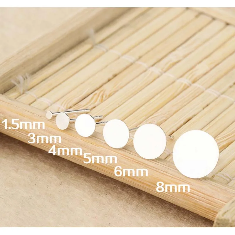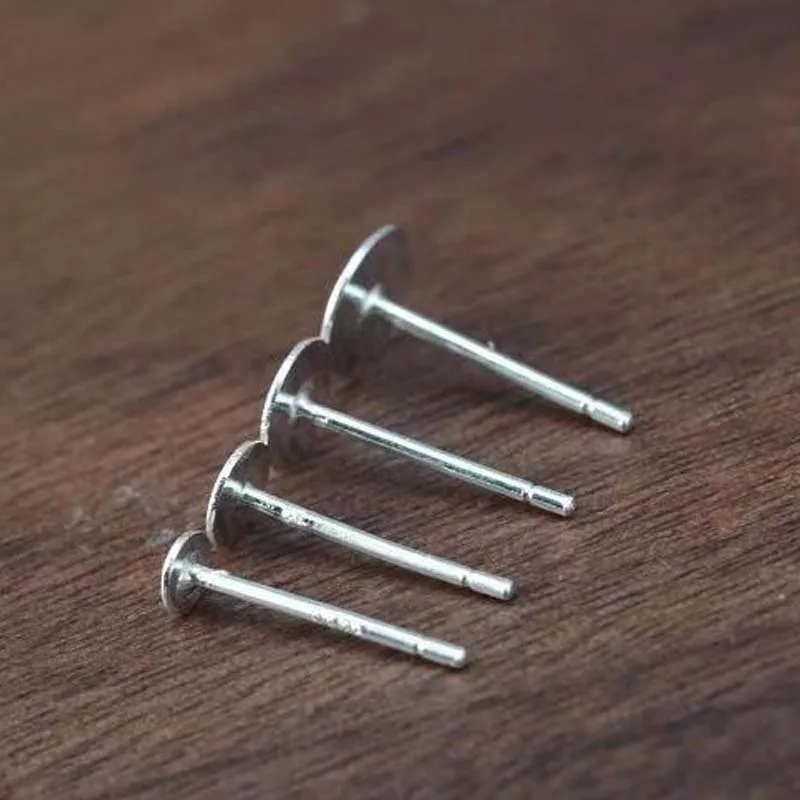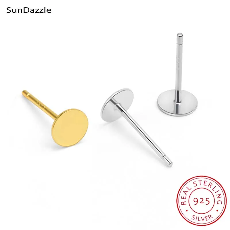 8 шт. реального чистого твердого 925 пробы серебряные серьги гвоздики иглой плоские круглые шпильки золото 3 8 мм настройки "сделай сам" для изготовления ювелирных изделий