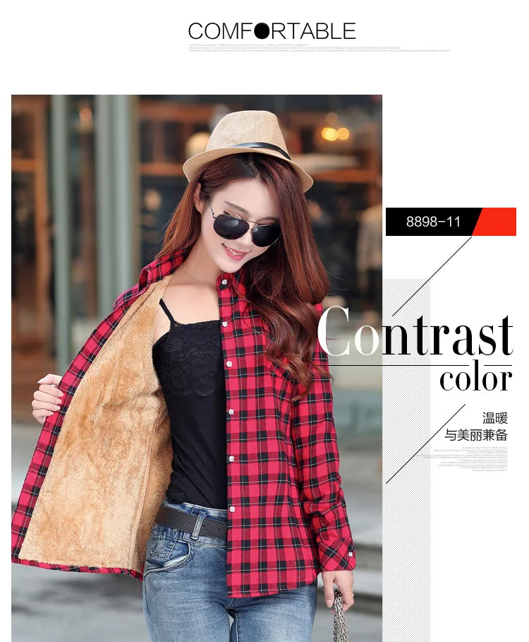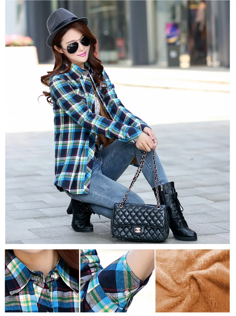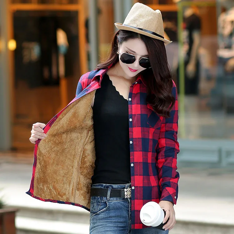 Новое поступление 2021, зимняя теплая Женская бархатная утепленная клетчатая рубашка, стильное пальто, куртка, женские повседневные топы, одежда, женская верхняя одежда