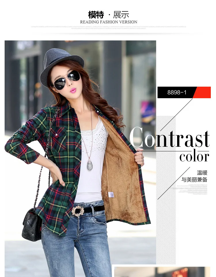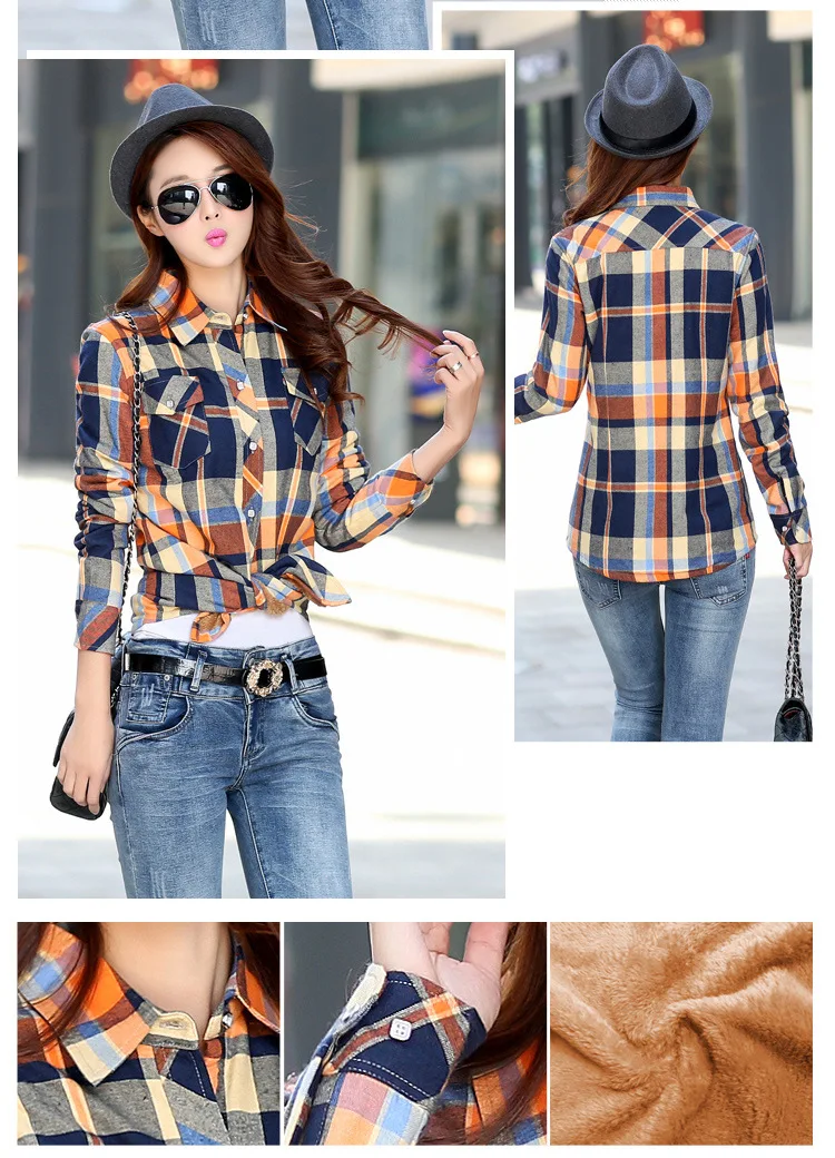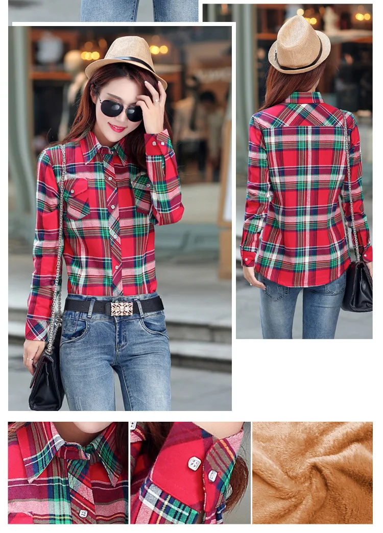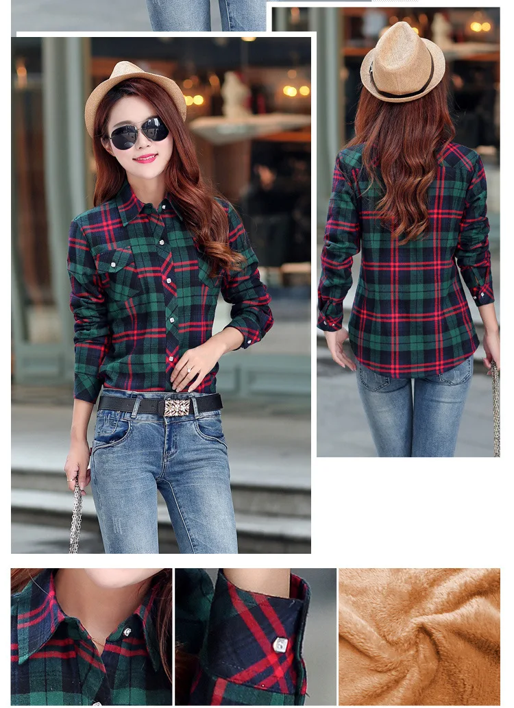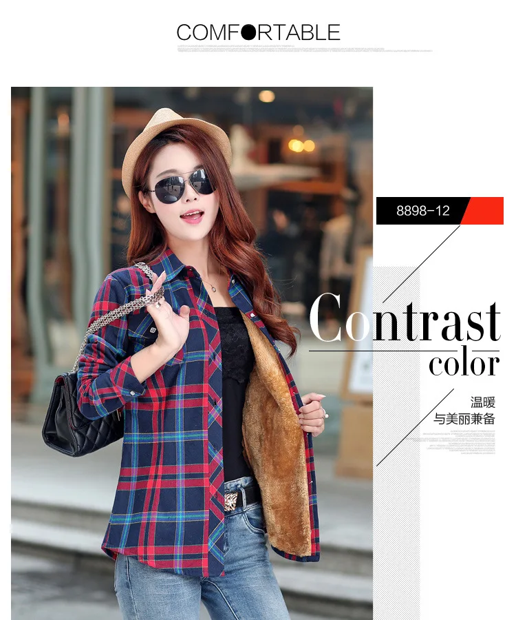 Женская теплая клетчатая рубашка, Повседневная Верхняя одежда в сту...
