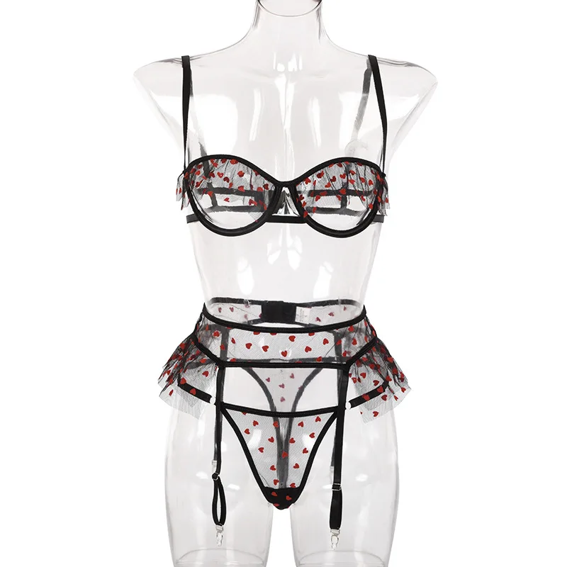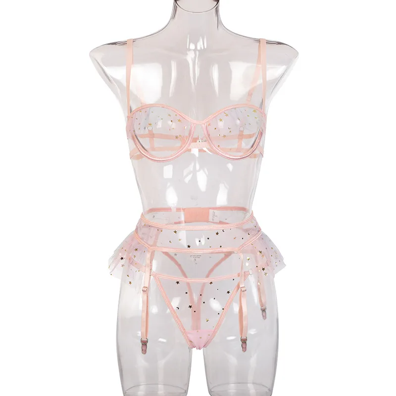 MeiKeDaiNicey Кружева полые сексуальный бюстгальтер и трусики для женщин комплект яркие звезды для девочек женские трусики с изображением сердца костюм сетки подвязки комплект нижнего белья