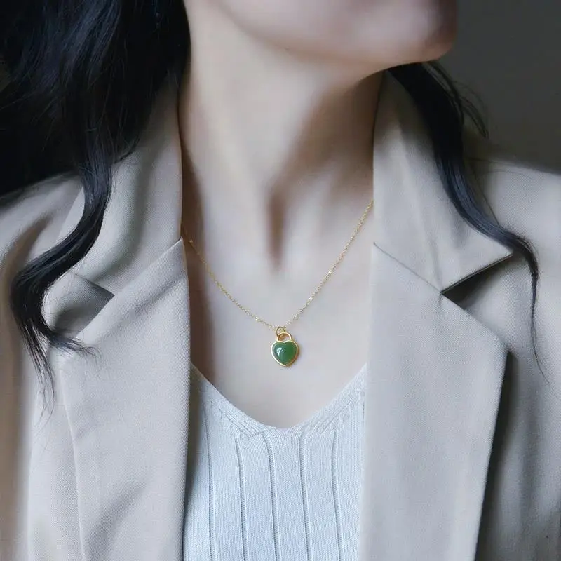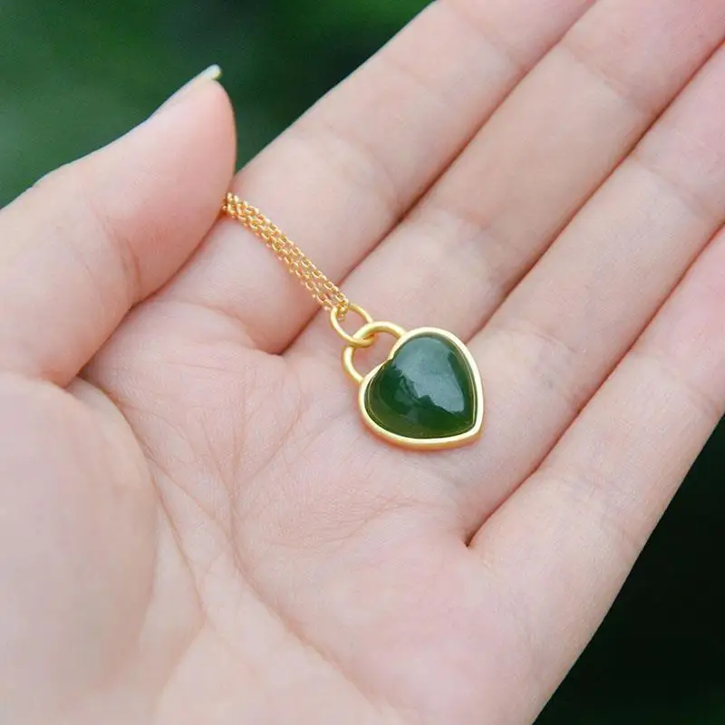 Подвеска из серебра 925 пробы в форме сердца, из натурального нефрита