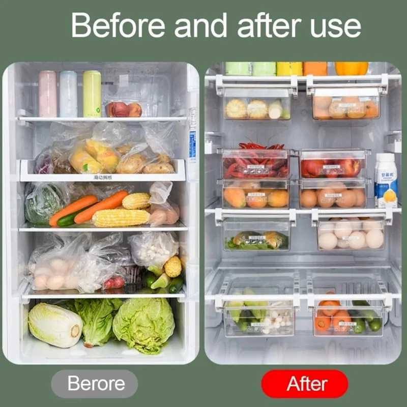 Ящик-органайзер для холодильника, коробка, выдвижная пластиковая прозрачная тянущаяся коробка для фруктов, овощей, яиц, подвесная коробка, контейнеры для хранения в холодильнике