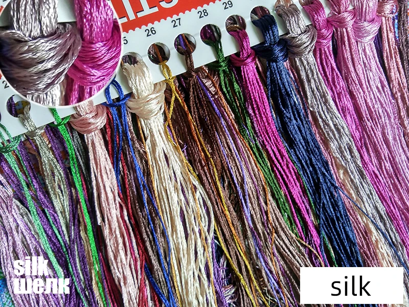 Вышивка крестом шелковая нить деталиВысококачественная Зеленая Шелковая нить, разница в цвете небольшая, яркий цвет, стерео чувство сильное,Хорошая износостойкость, температура стирки 80 градусов,Линия более прочная, не выцветает, легче вышивать готовую продукцию.