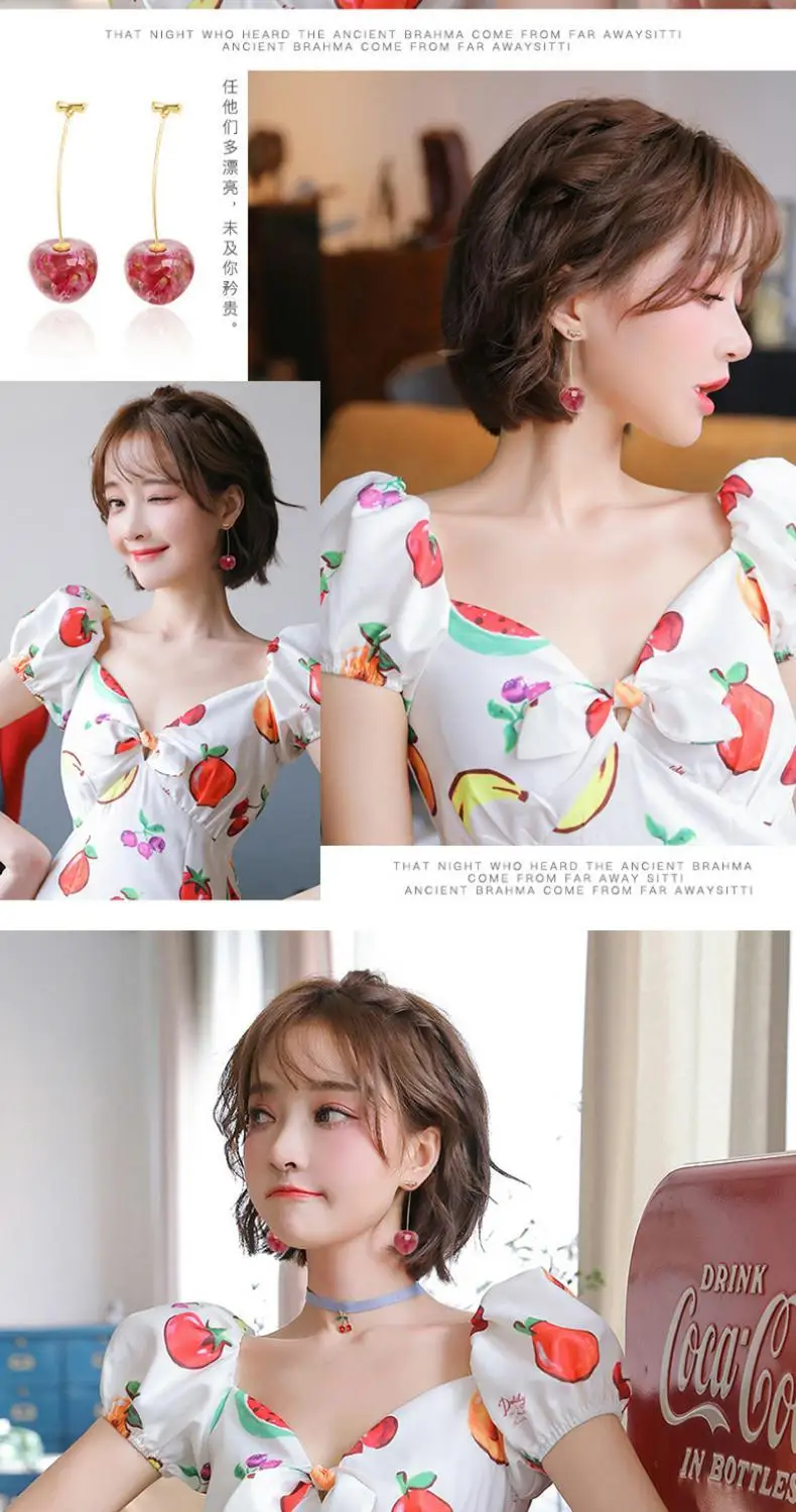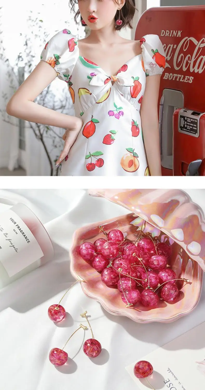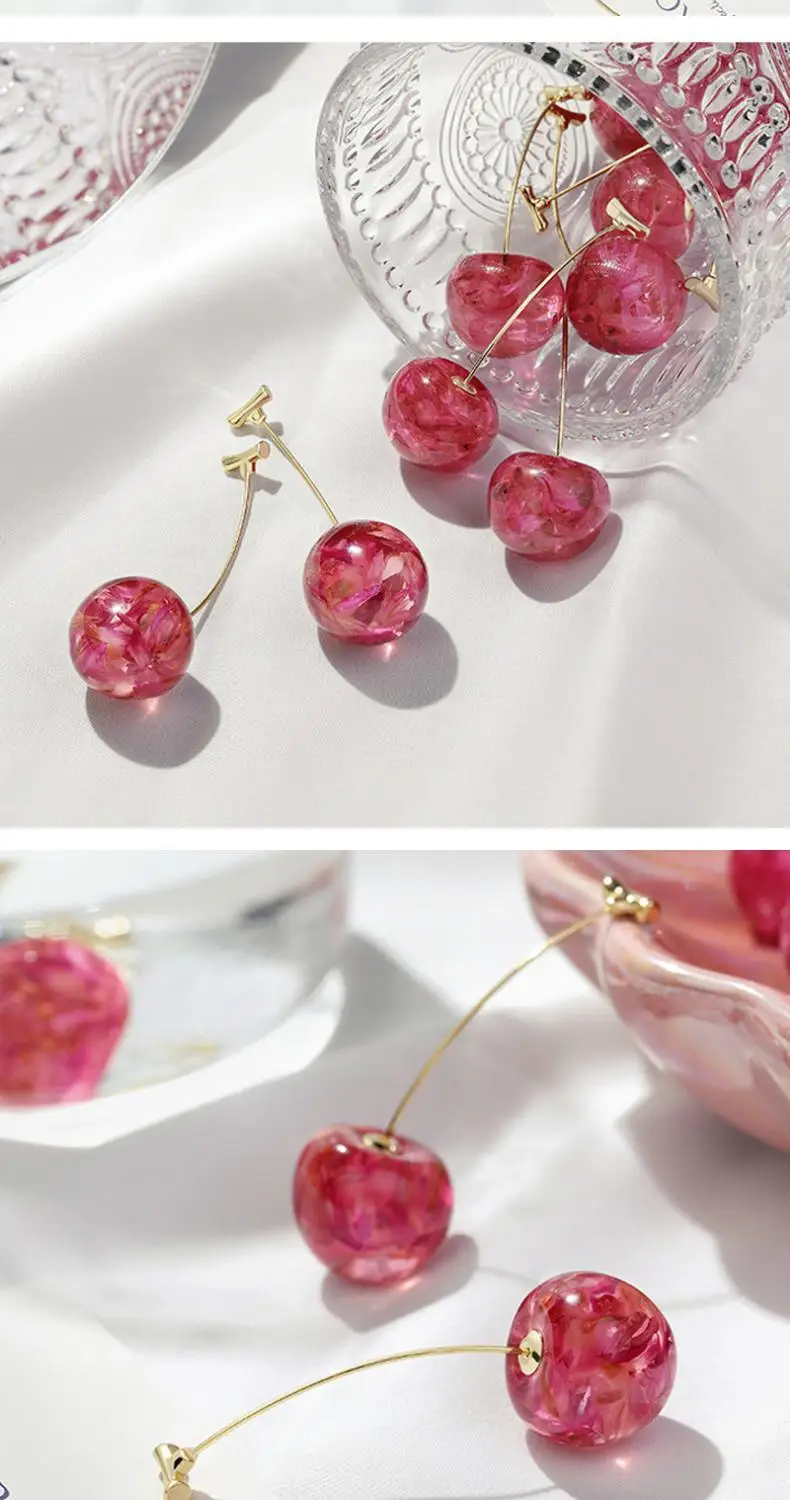 Новые Индивидуальные модные дизайнерские серьги из смолы с милыми девушками Свежие Вишни мягкие розовые сушеные вишни серьги с подвесками для женщин
