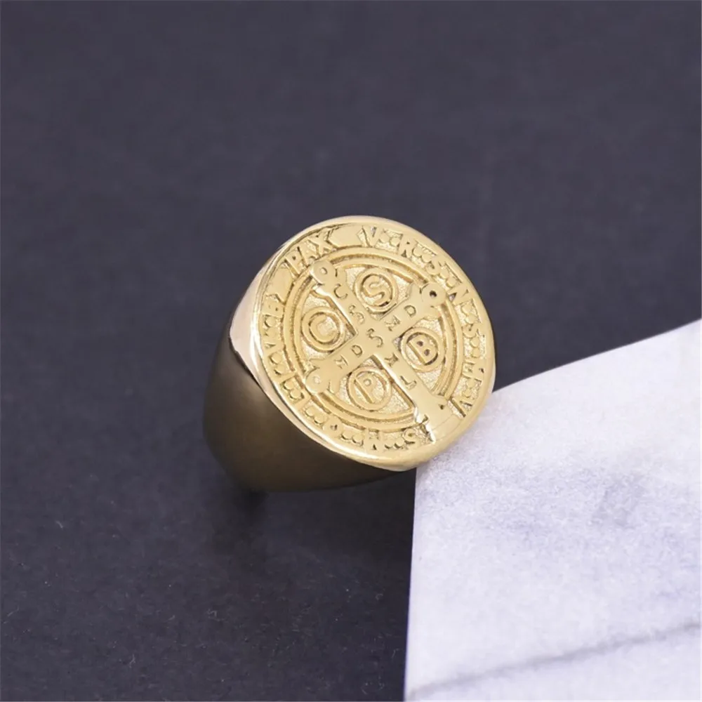 Сент-Бенедикт Cspb кольцо из белого золота цвет религия крест мужские кольца в стиле панк для мужчин нержавеющая сталь молитва ювелирных изделий творчества дропшиппинг