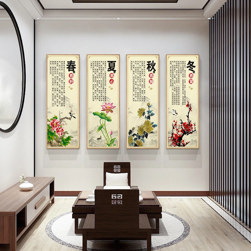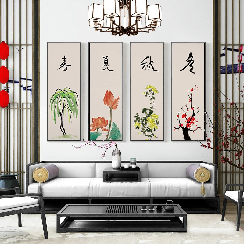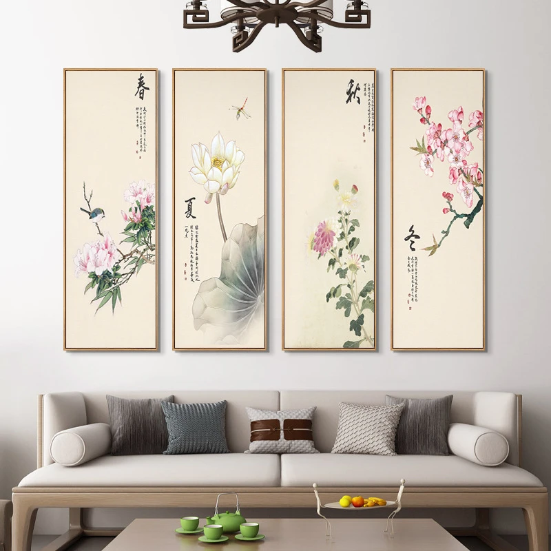 Постеры с цветами в традиционном китайском стиле, на холсте, для офиса, гостиной, домашнего декора