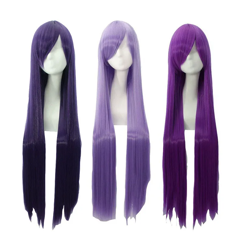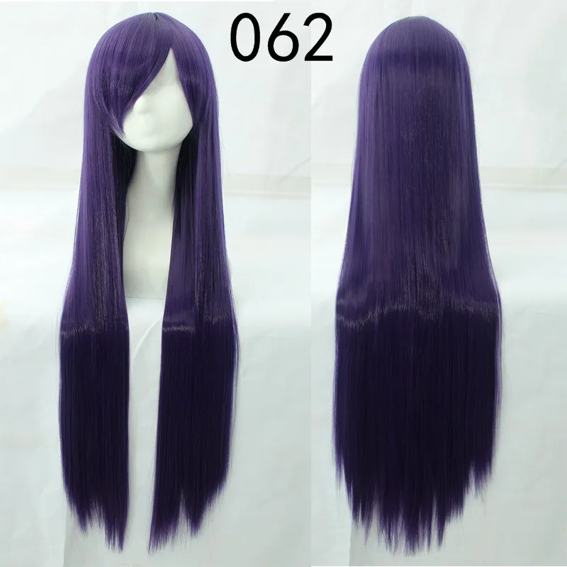 6 стилей Аниме 100 см длинный прямой фиолетовый косплей парик с челкой женские 40 ''прямые синтетические волосы парики Фиолетовый