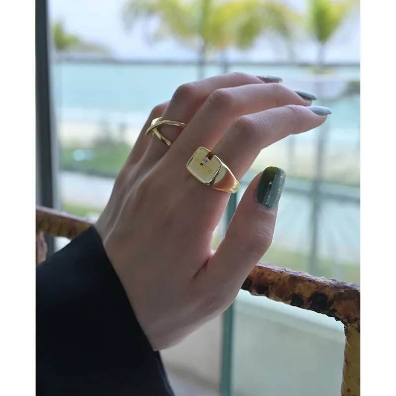 В Корейском стиле s925 серебро кольцо ins кольцевая ферма жесткости гладкой в виде геометрических фигур в стиле ретро кольцо источник оптовая продажа с фабрики 18k золотые украшения