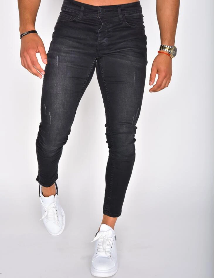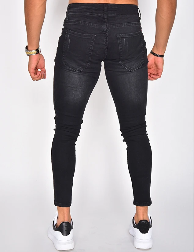 Мужские черные рваные джинсы скинни с небольшой ножкой, брюки-каран...