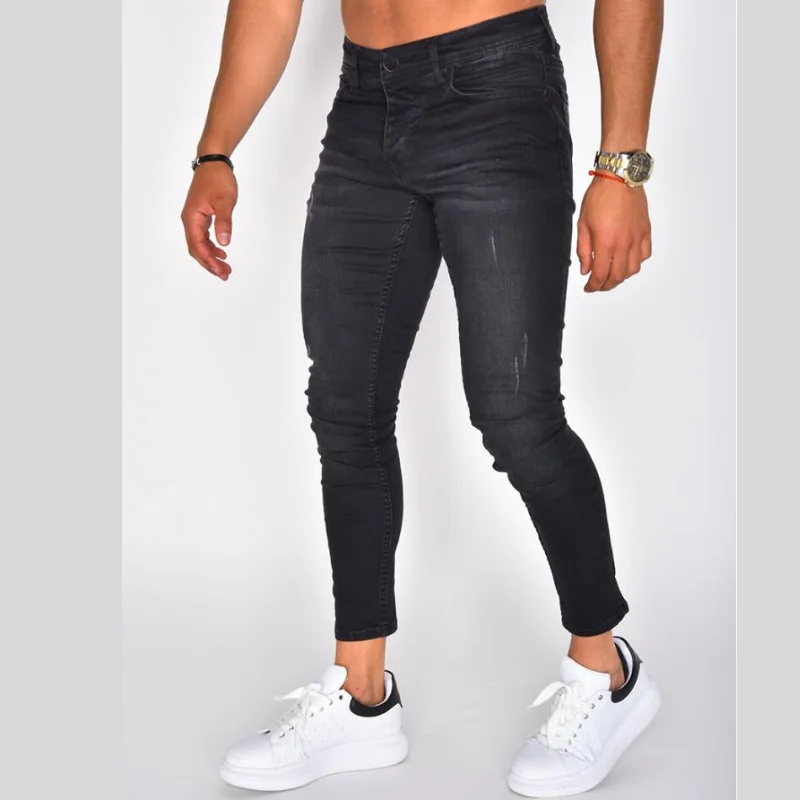 Мужские Стрейчевые рваные джинсы, серые эластичные рваные джинсы с ...