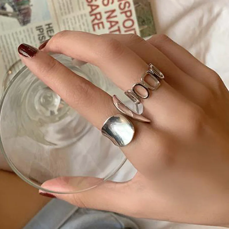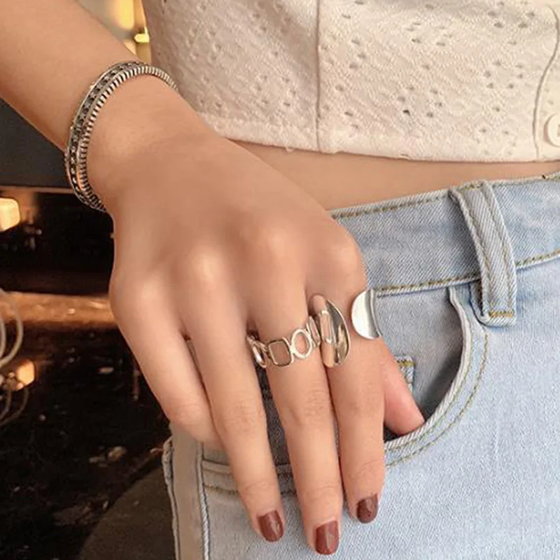 Минималистичные широкие кольца из стерлингового серебра 925 пробы для женщин, новые модные креативные полые геометрические украшения ручной работы для вечеринок, подарки