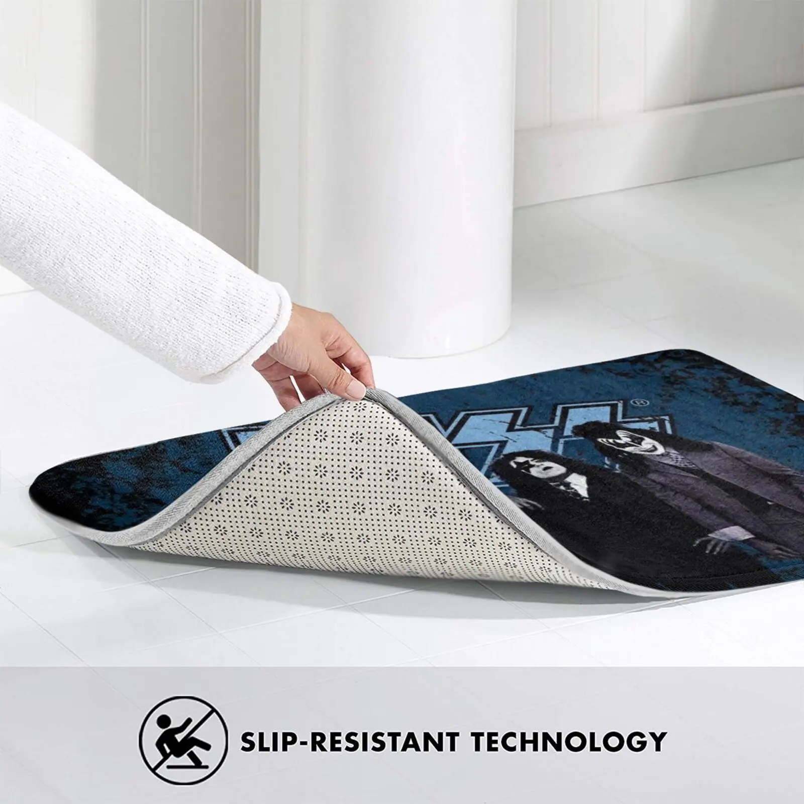 Поцелуй Ковер с логотипом группы на голубом фоне, противоскользящий, для спальни, входной двери, для фанатов поцелуев